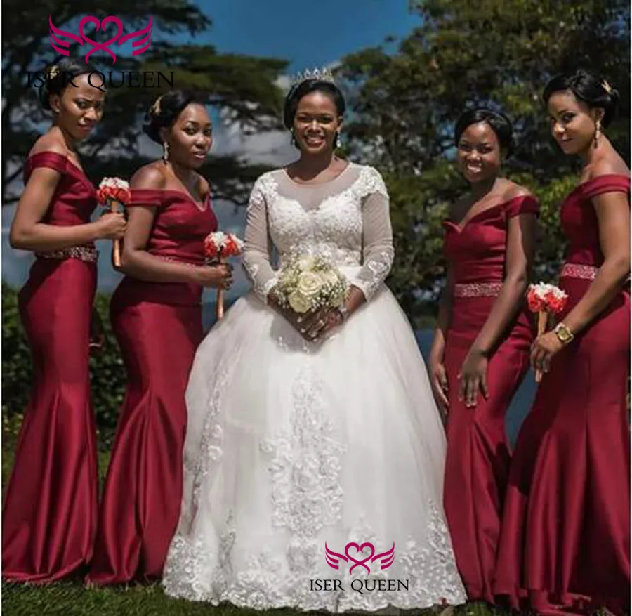 Великолепное свадебное платье русалки с длинными рукавами и v образным вырезом