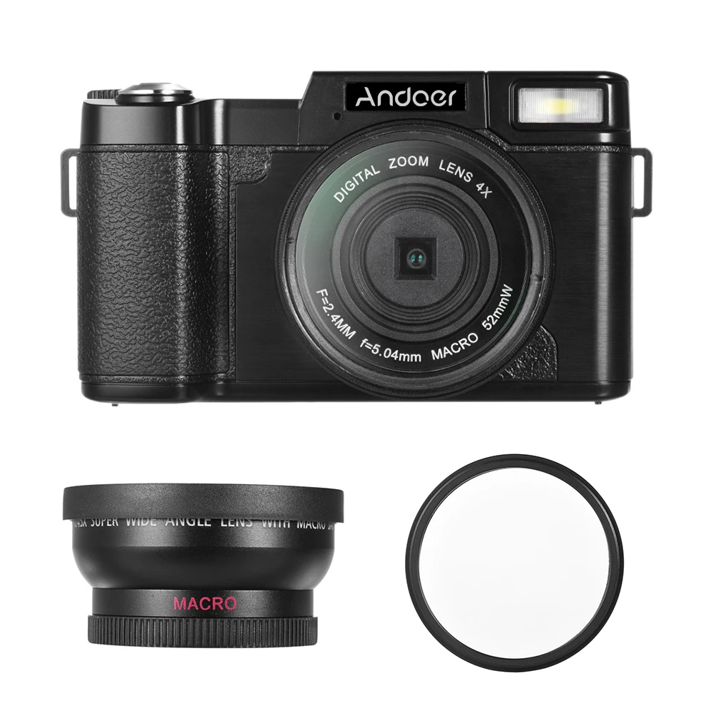 Andoer CDR2 24MP цифровая камера Full HD 1080P 3,0 "Вращающийся ЖК-экран Anti-shake 4X видеокамера с широкоугольным объективом и УФ-фильтром