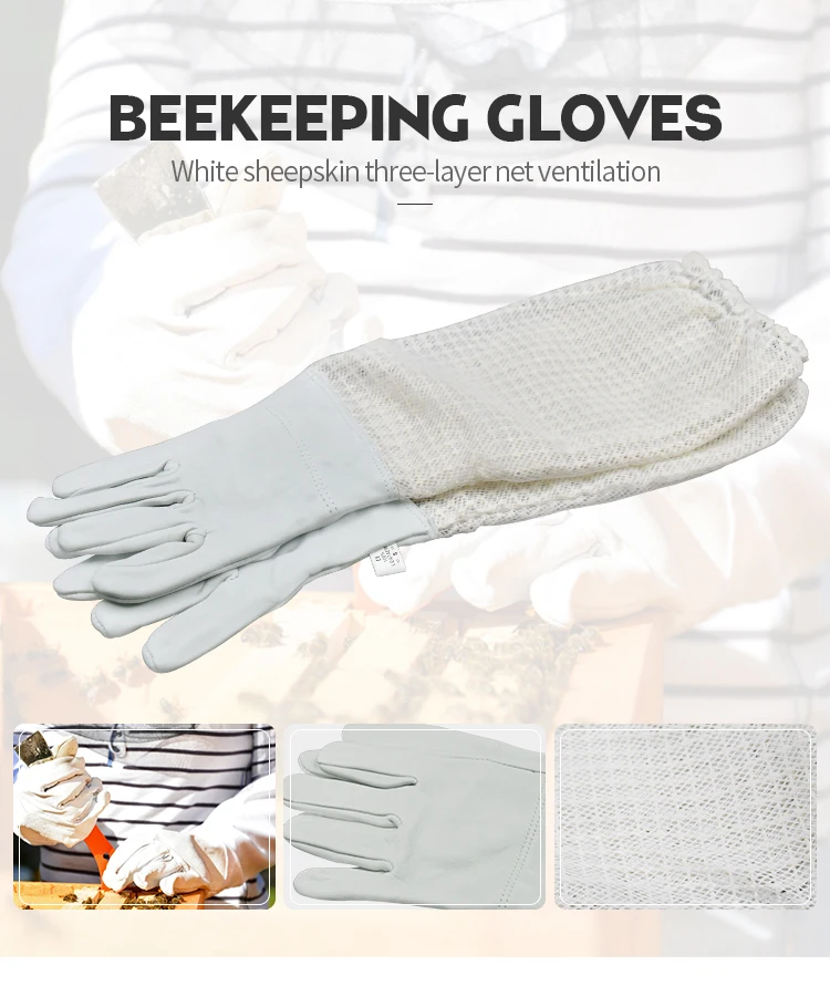 Перчатки для пчеловодства из белой овчины, трехслойная сетчатая Вентиляция для пчеловодства, перчатки для пчеловодства