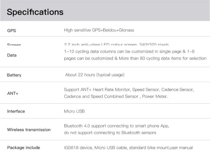 Название: ANT + GPS IGS618 Bluetooth велосипедный водонепроницаемый беспроводной спидометр