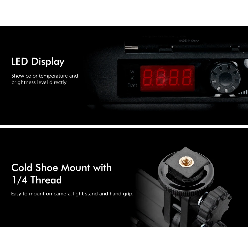Регулируемая Цветовая температура 3200 K ~ 5600 K, вы можете свободно переключаться с теплого на белый светильник.