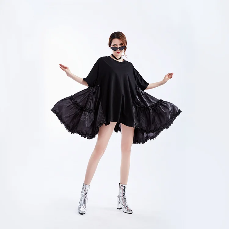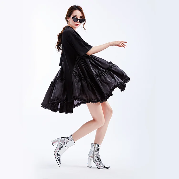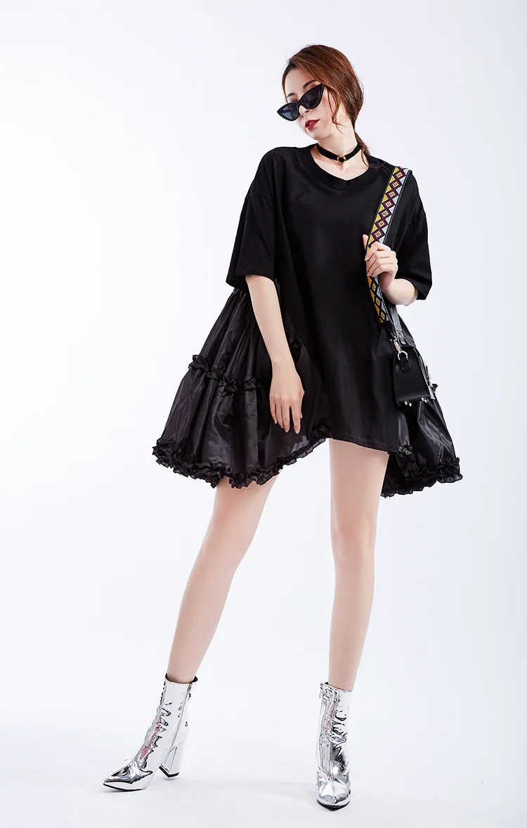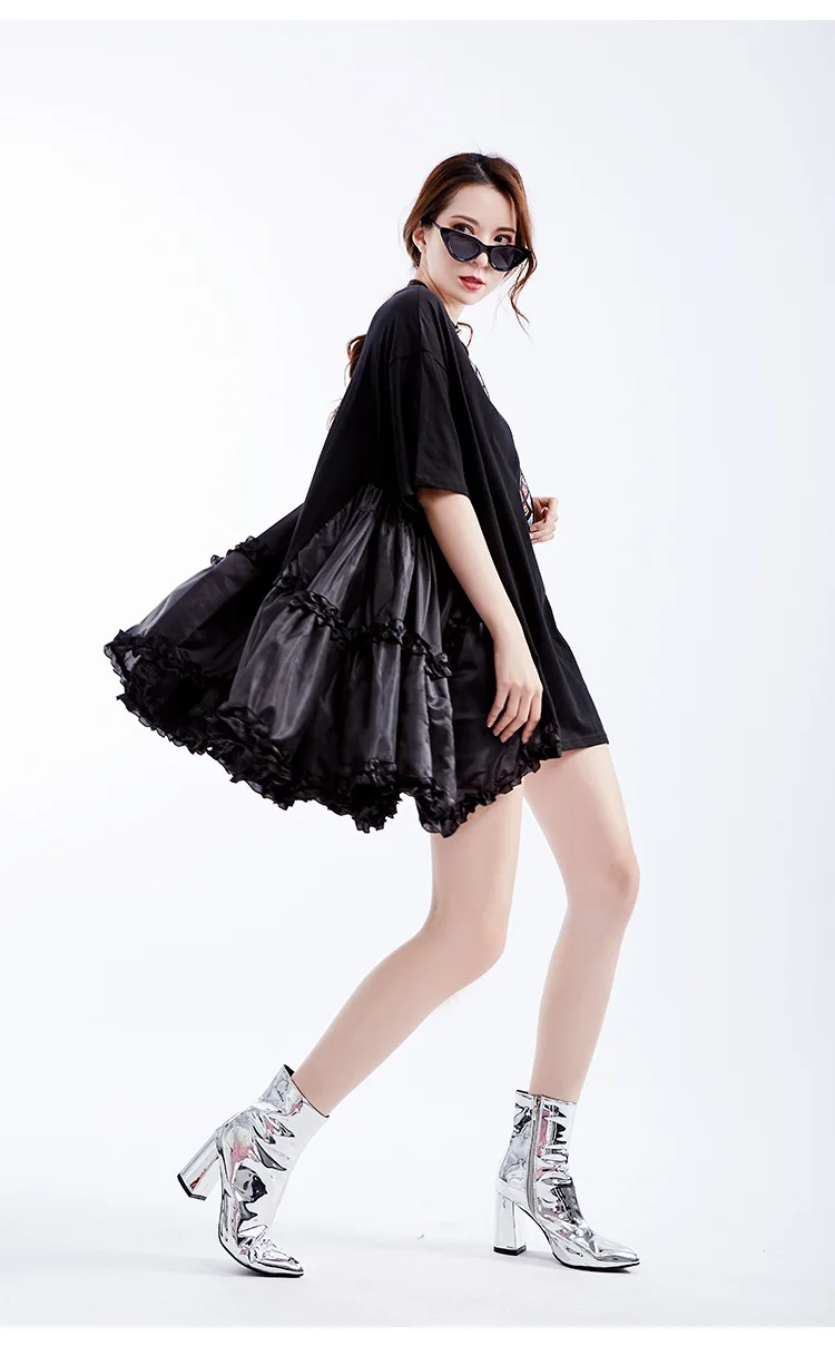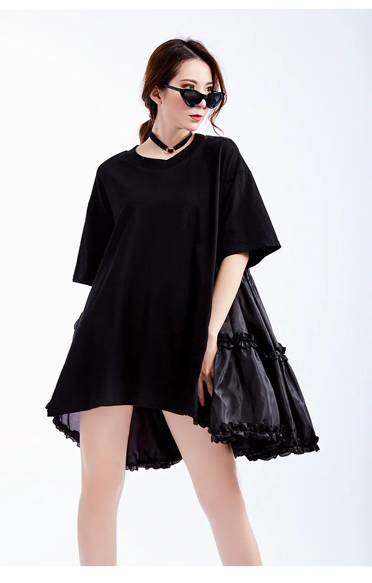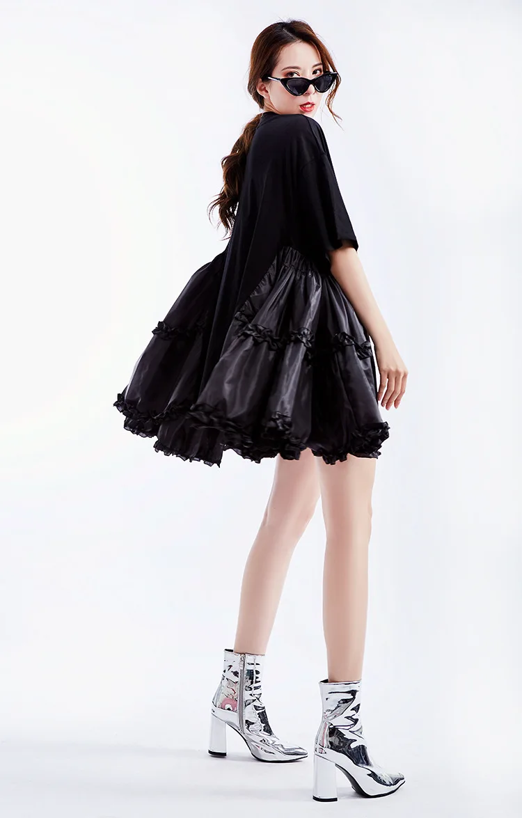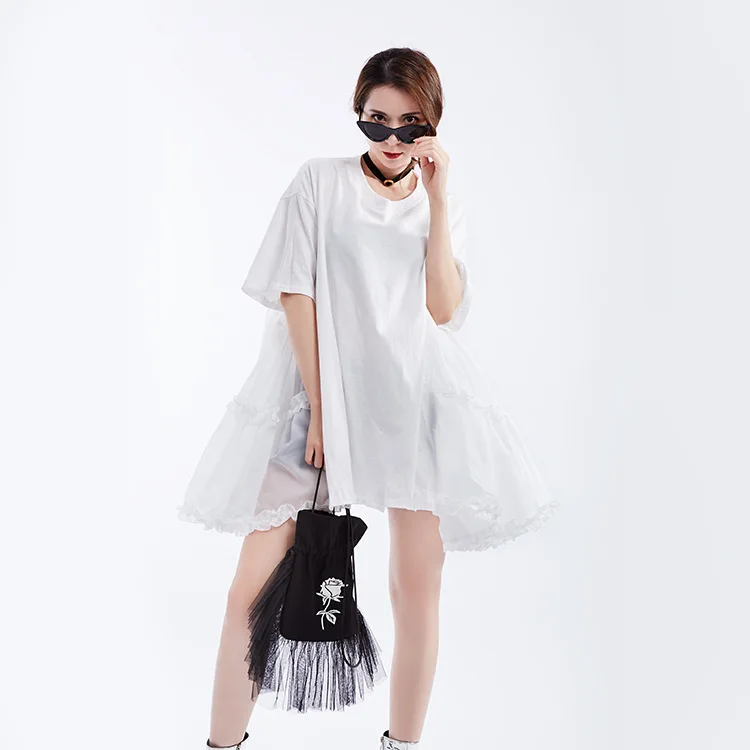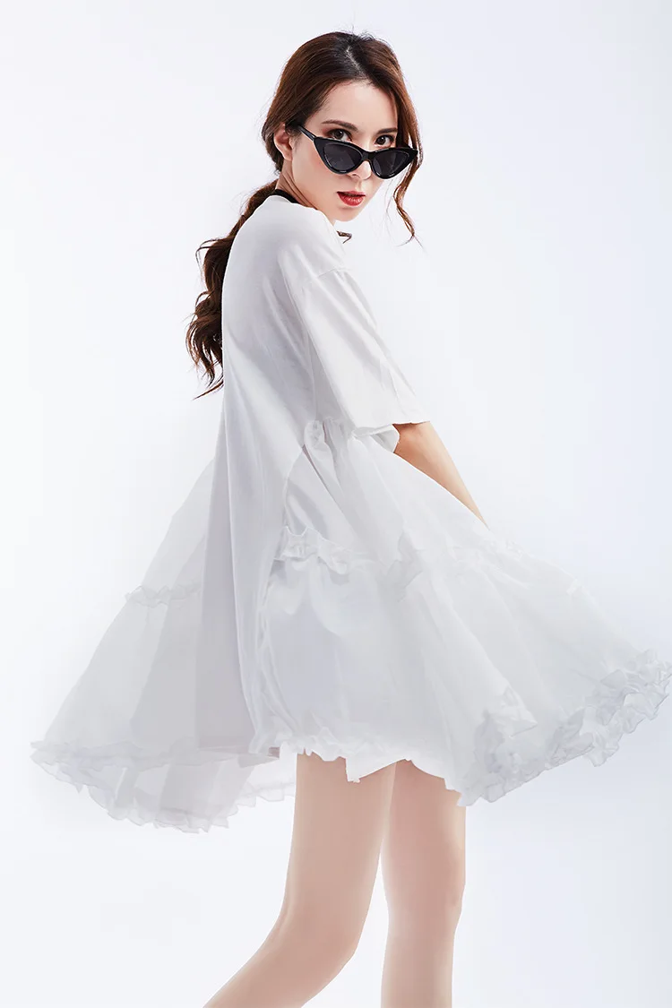 Ткань: хлопок + Атлас Цвет: белый/черный Размер: один размер, длина платья 75 см, обхват груди 110 см, плечо 55 см, рукав 20 см Модель: высота 165 см, вес 50 кг Стирка: деликатная стирка, легкая и темная одежда отдельно Посылка: Платье 1 шт.