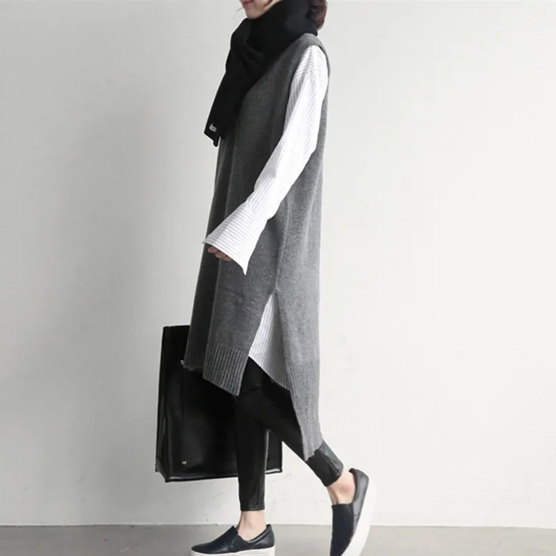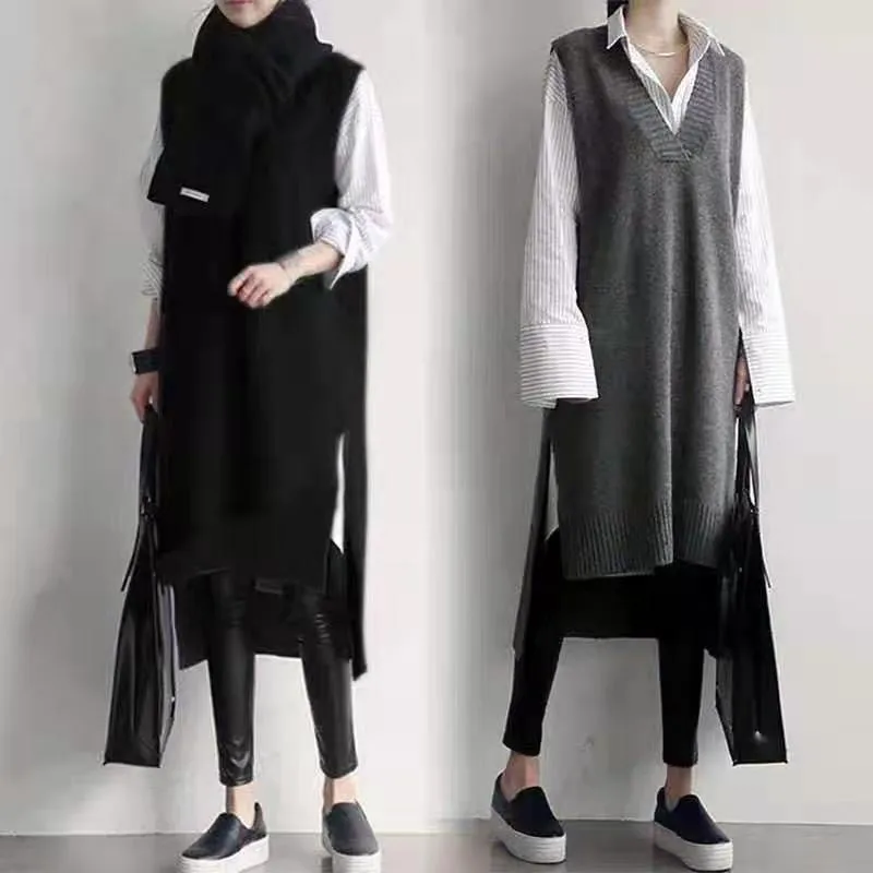 1. Этот длинный свитер без рукавов также может использоваться как вязаное платье, новое и красивое, стильное и шикарное.