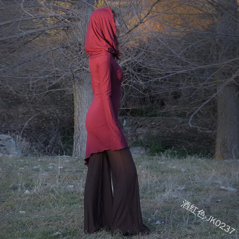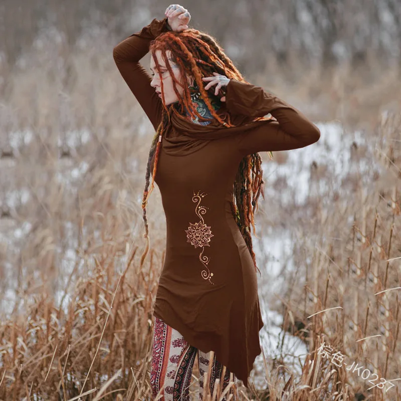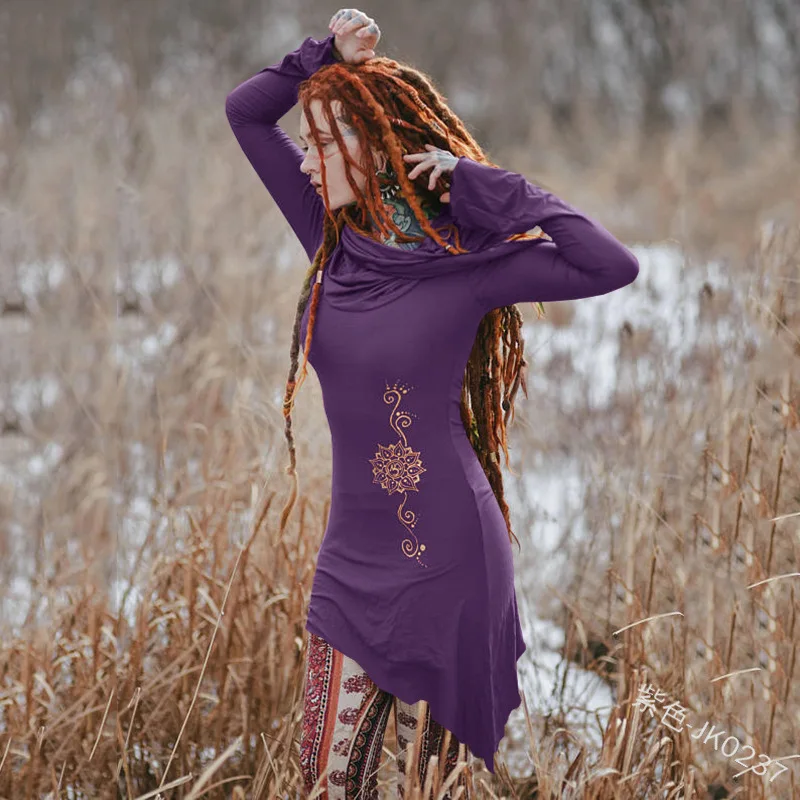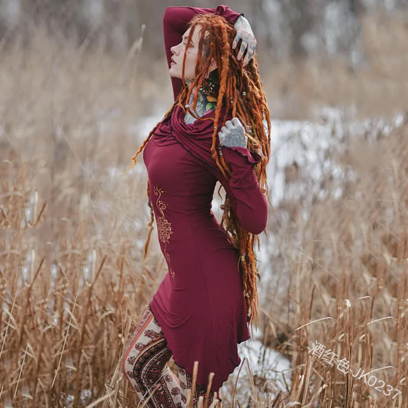 Vintage Long Sleeve Mini Dress Festival Dress Big Hoodie Hippie Slim Dress Victorian Style Organic Cotton Jersey Fairy Dress ecoparty
