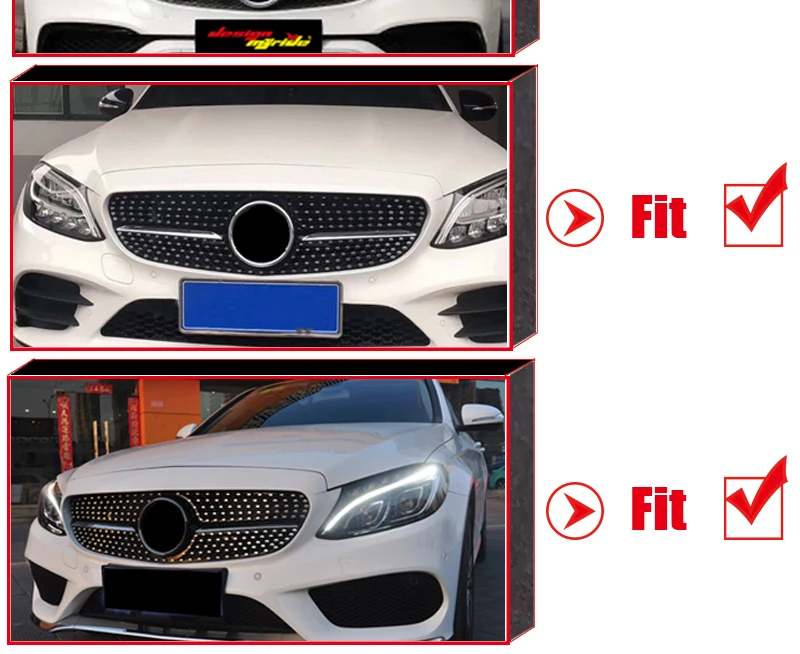 Для Mercedes C-Class C205 W205 передний бампер Спортивная решетка гриль решетки Алмазный вид ABS Серебряный C63 Стиль прямая замена 19-