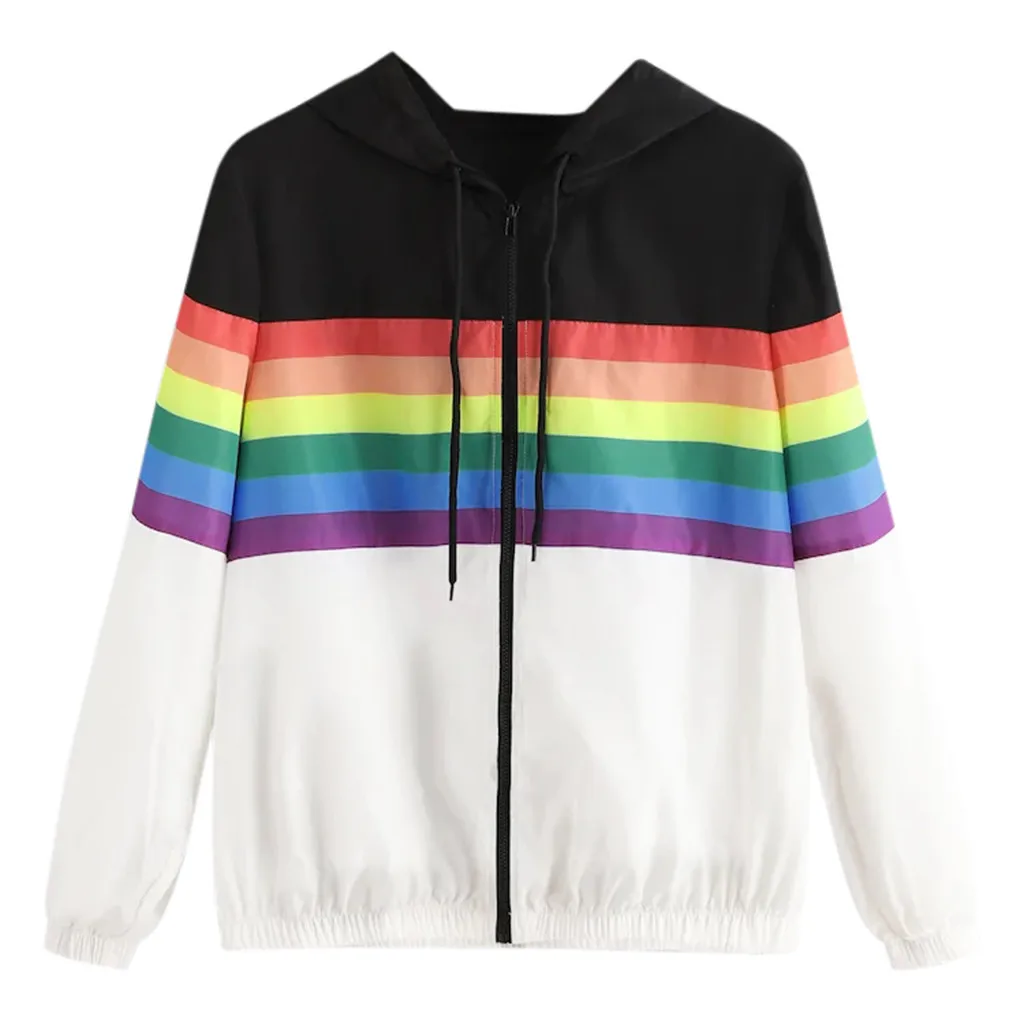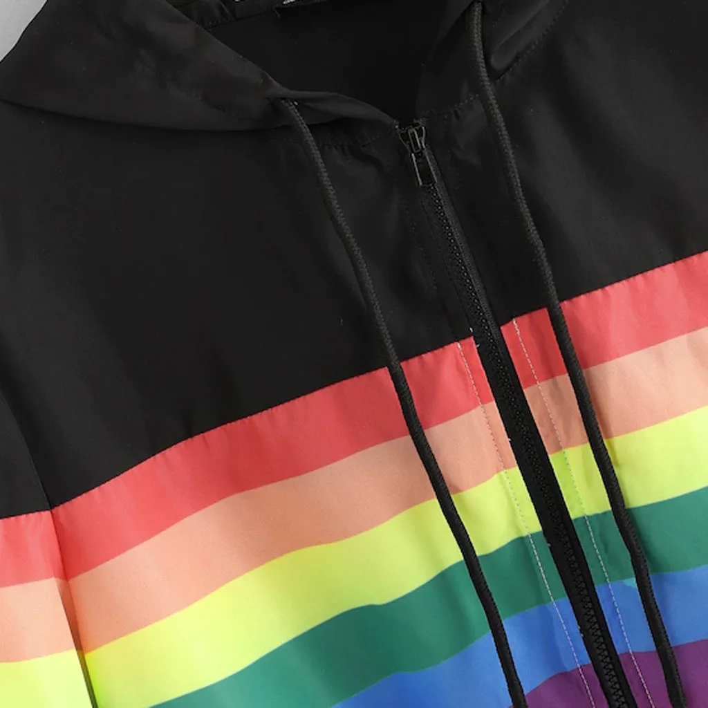 Женский длинный рукав Лоскутная с капюшоном на молнии свободная повседневная спортивная куртка блузка