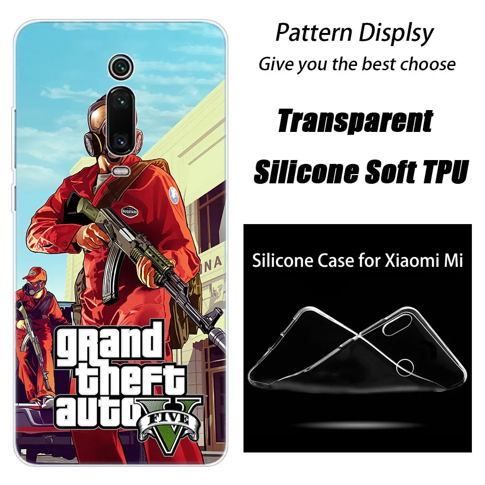 MOUGOL GTA 5 Game роскошный мягкий силиконовый чехол для Xiaomi Pocophone F1 Mi 9T Pro CC9 CC9E 9 9SE 8 A3 A2 Lite A1 5X 6X Mix3 Play Модный чехол