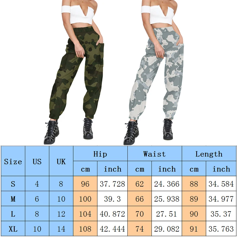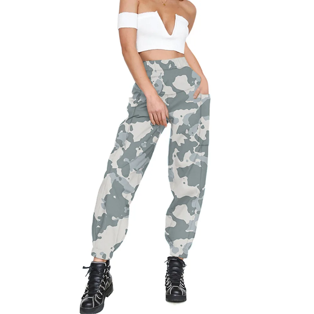 Женские повседневные эластичные камуфляжные длинные штаны с высокой талией Camou брюки карго Особенности: Материал: полиэстер Цвет: светло-серый, армейский зеленый Стиль: Camou брюки Размер: S, M, L, XL