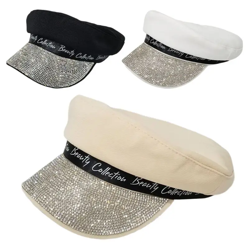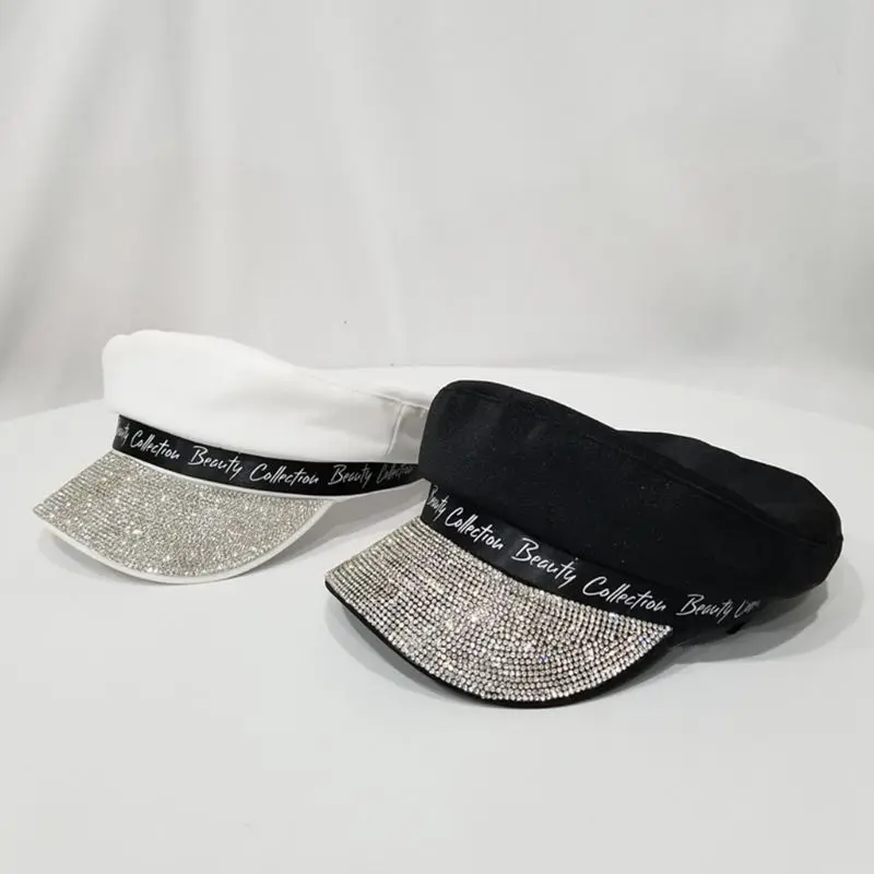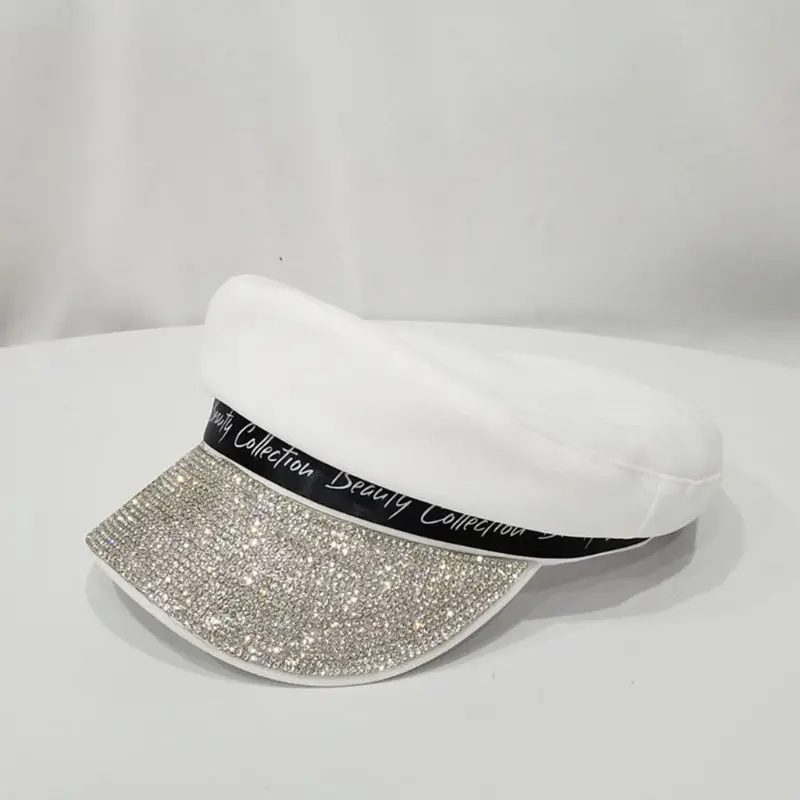 Женский хлопковый регулируемый Топ в европейском стиле, берет с блестками, стразы, буквы Newsboy, художник, солнцезащитный козырек, военная шапка