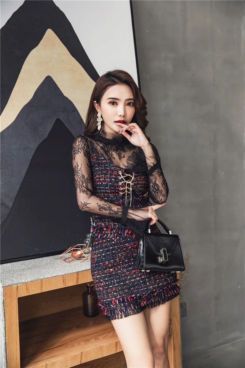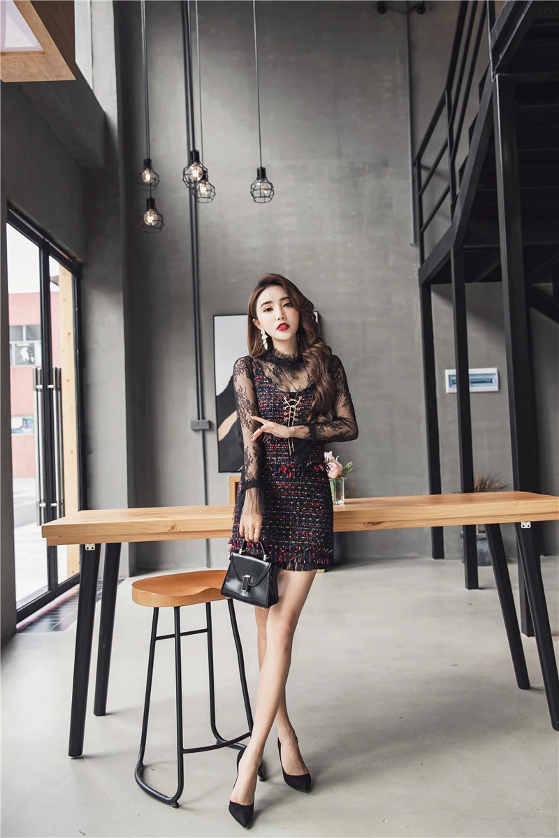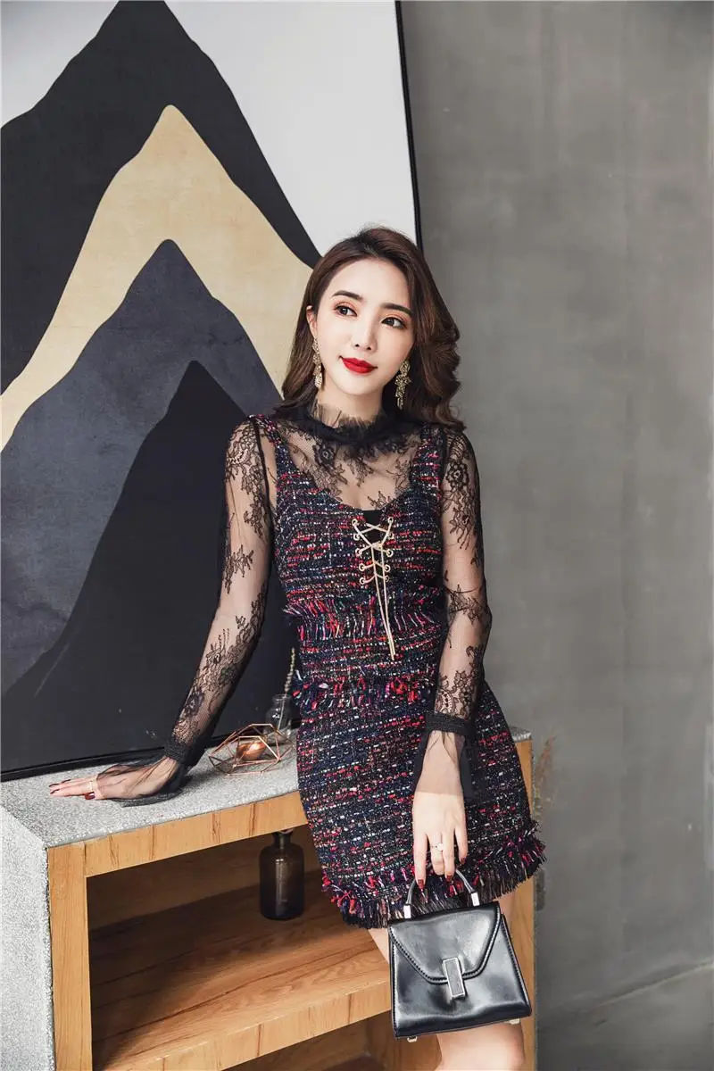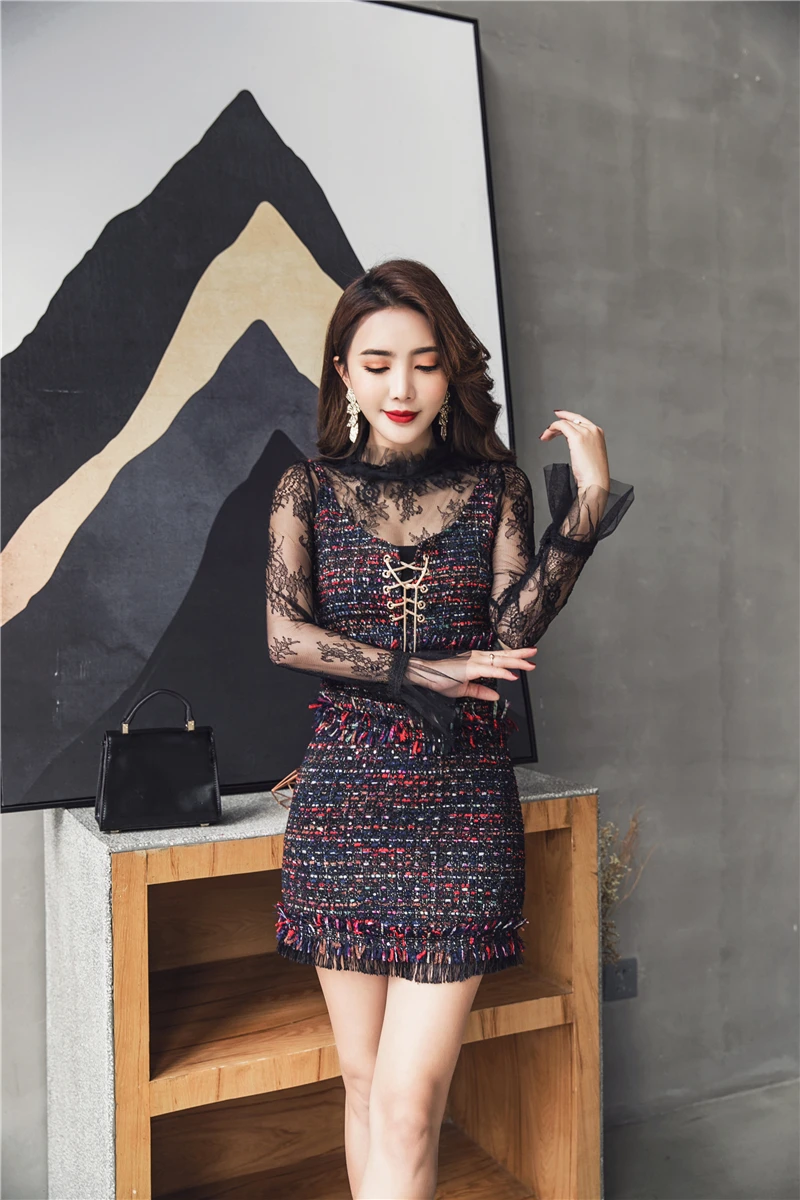 2020 брендовые весенне-осенние женские костюмы Черная Кружевная блуза с расклешенными рукавами + сексуальный твидовый жилет и юбка комплект из 3 предметов DF417 <
