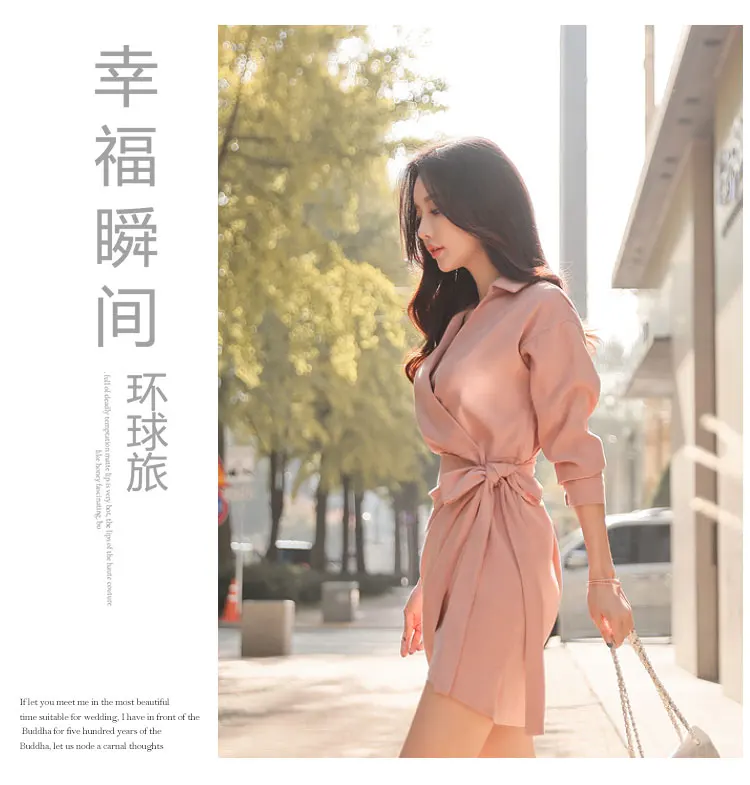 Новинка 2020 года; розовые Саше; Повседневное платье-рубашка с длинными рукавами; розовое офисное мини-платье; Vestidos QC146