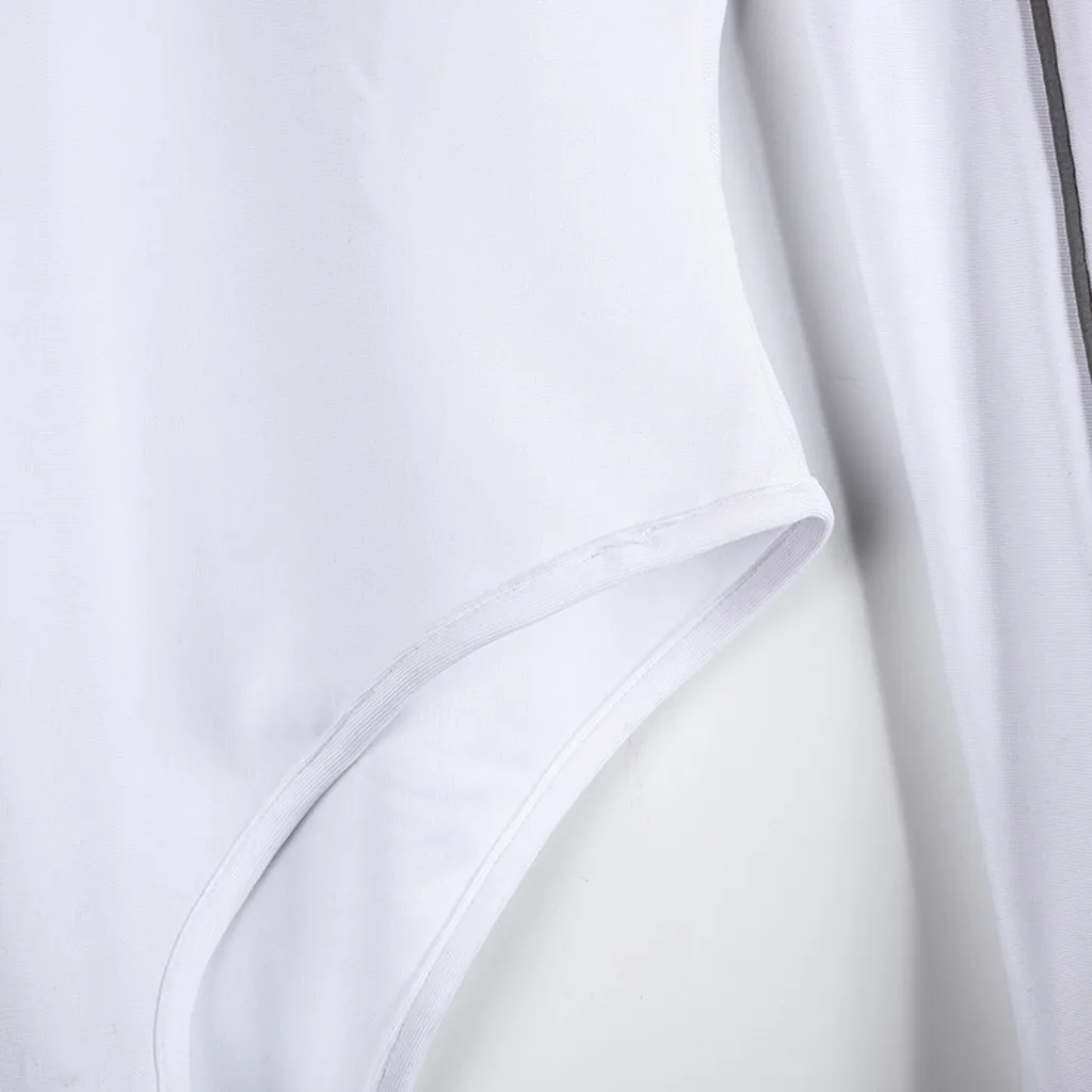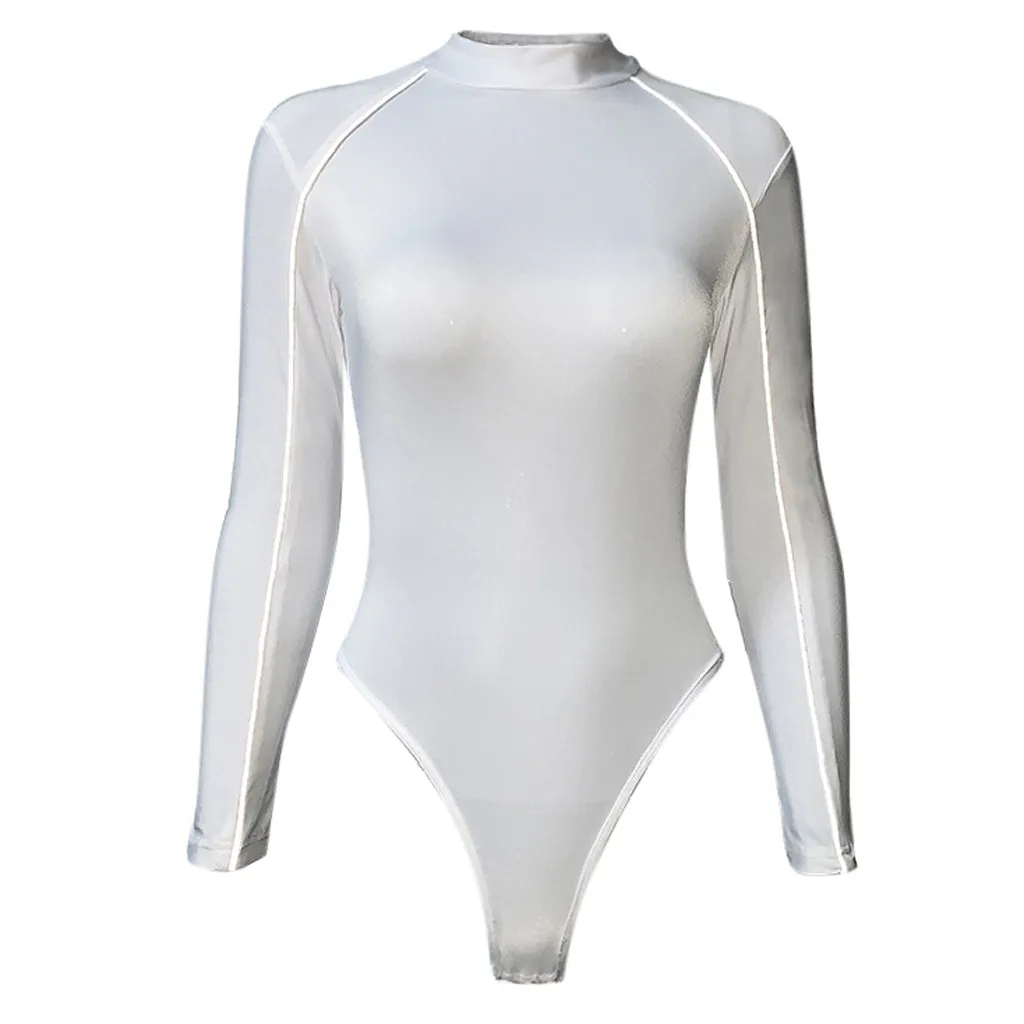 Женский сексуальный однотонный комбинезон, модный светоотражающий комбинезон в полоску с длинным рукавом, ползунки-водолазка, новинка 2019, боди Feminino E