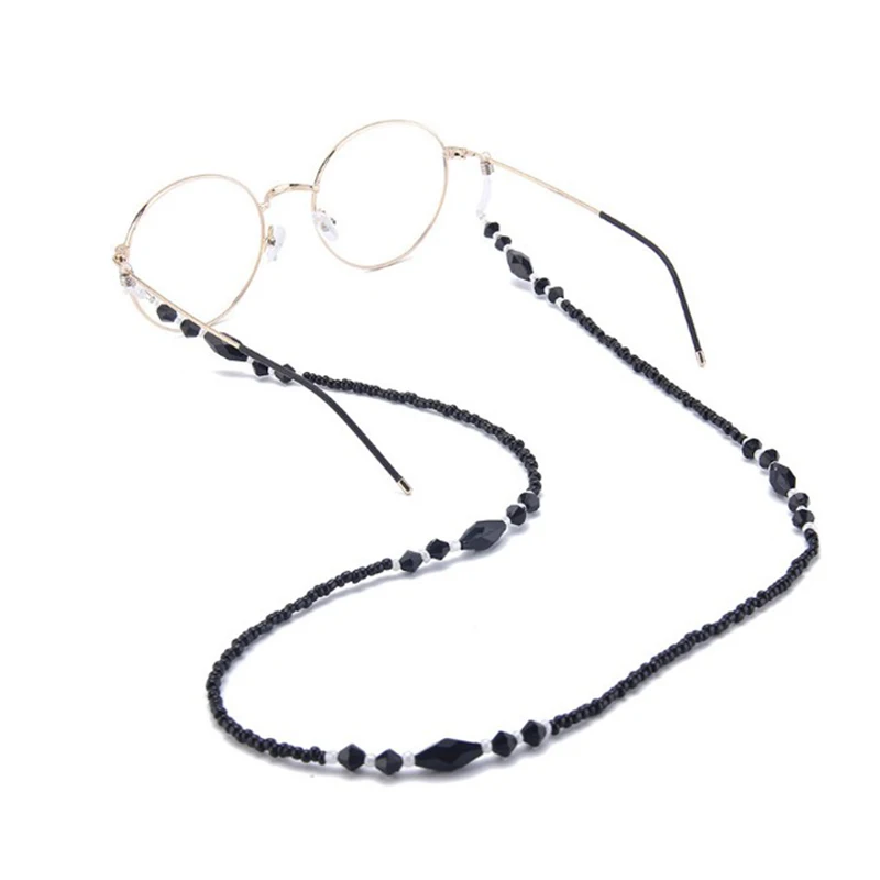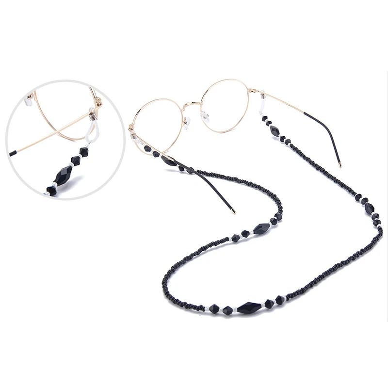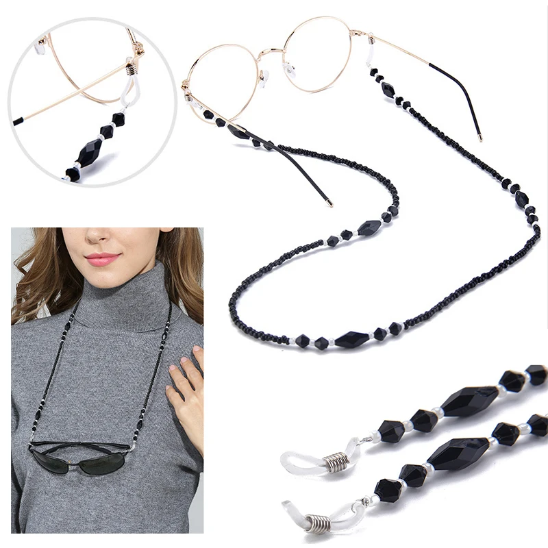 Женские очки с цепочкой, черные акриловые бусины, цепь, противоскользящие очки, ремешок на шею
