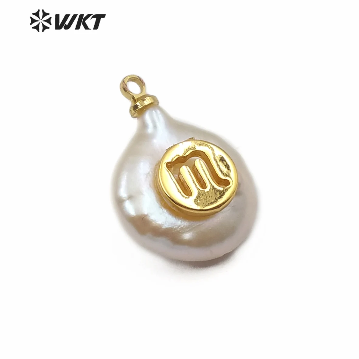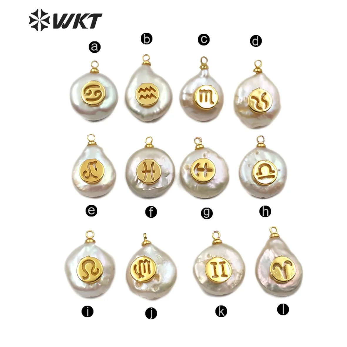 WT-JP161 twelve constellations pattern carved Pendant natural pearl with gold plated round Connector women month special gift