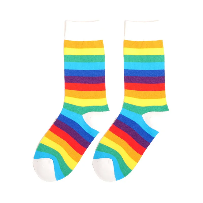 Полосатые радужные носки для мужчин и женщин, носки из чистого хлопка