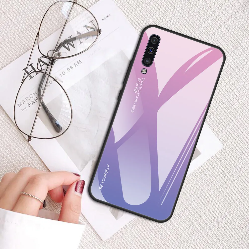Цветные стеклянные чехлы для телефонов samsung A10 A20 A30 A50 A70, Жесткий Чехол из закаленного стекла для samsung A 50 30 20 70 10, чехол Coque