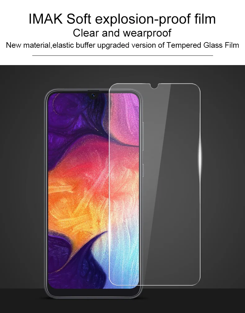 Для Samsung Galaxy A20 A30 A40 A50 A60 A70 A80 A20e M30 A40s защитная пленка IMAK Прозрачная мягкая Взрывозащищенная Новый высокопрочный нанослой + композитный материал из ТПУ имеет дисплей высокой четкости и хорошую стойкость к истиранию. Он достаточно мягкий, чтобы лучше соответствовать экрану с изогнутыми краями и эффективно противостоять ударам, взрывам, а также уменьшать вероятность нанесения белых краев. Новый нанослой + ТПУ композитный материал Дисплей высокой четкости, хорошая стойкость к истиранию Достаточно мягкий для лучшей посадки, избегая белых краев Функция защиты от разрыва, безопасная и надежная
