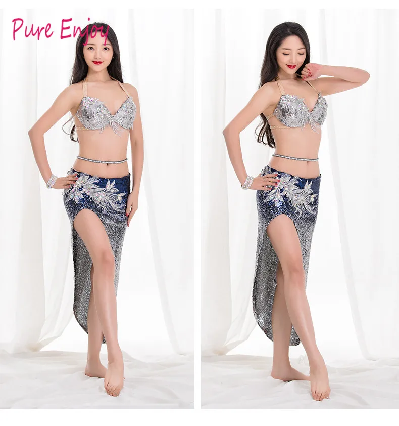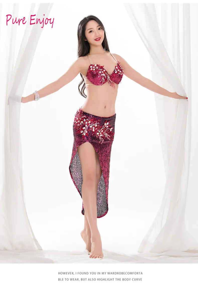 Женский индийский бюстгальтер на бретельках для танца живота, юбка со стразами, костюм для соревнований, костюм из спандекса, Румба, Самба, танго