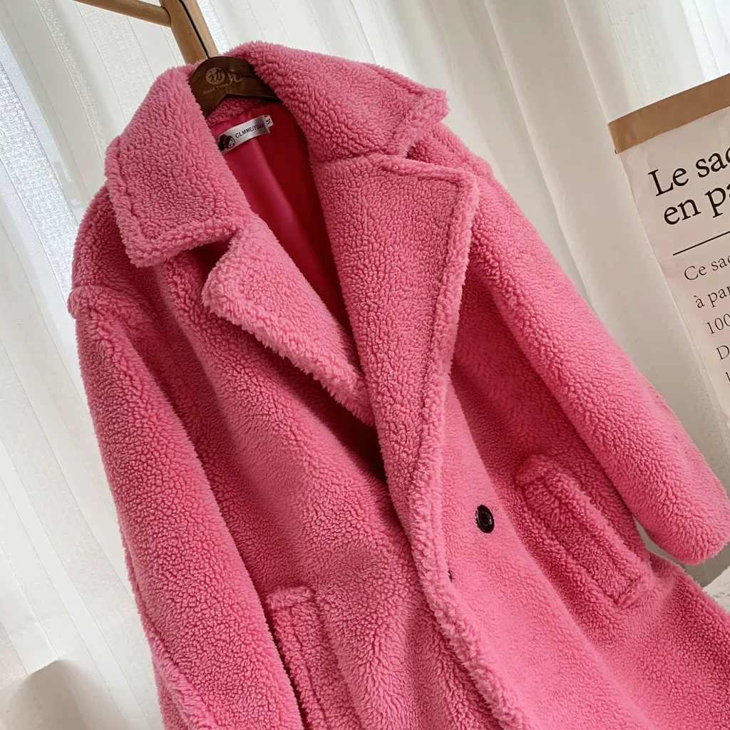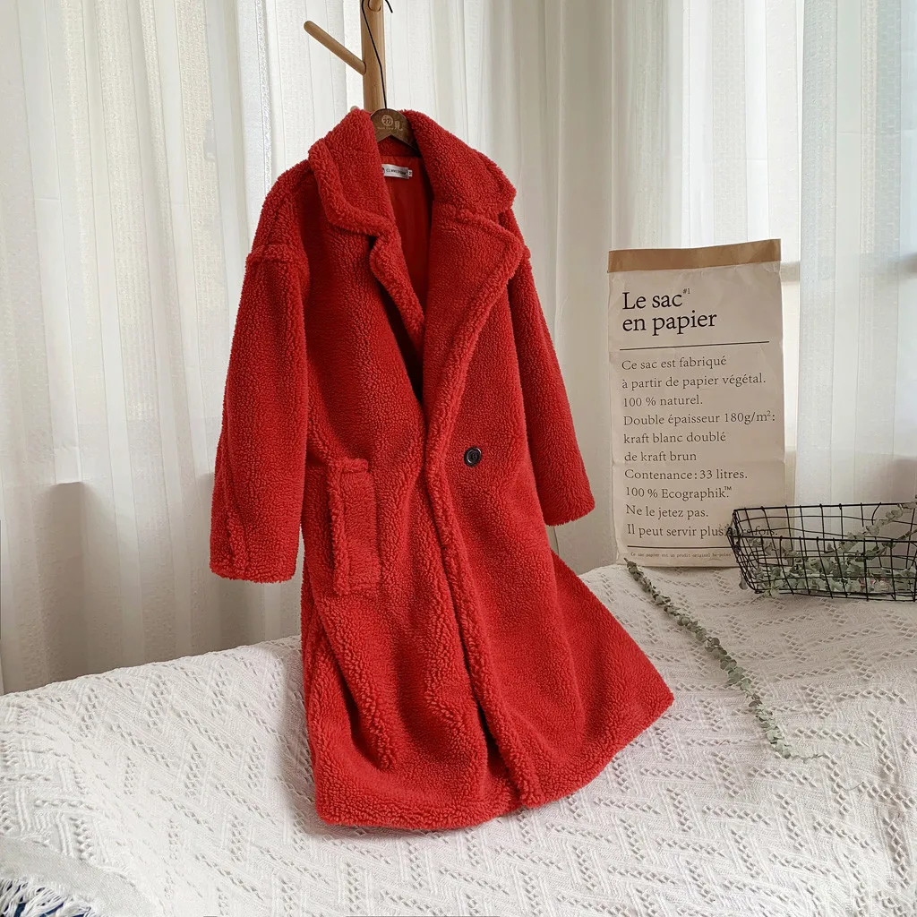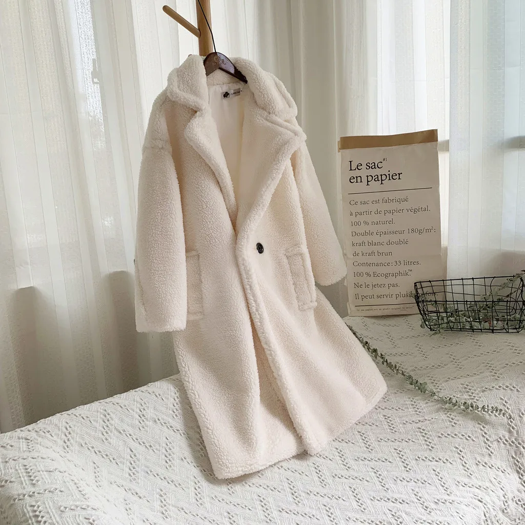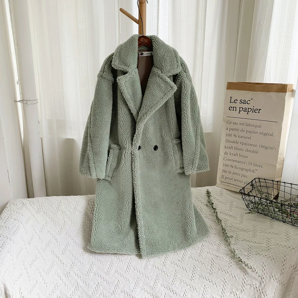 Женская модная осенняя и зимняя свободная ветровка средней длины, пальто из овечьей шерсти
