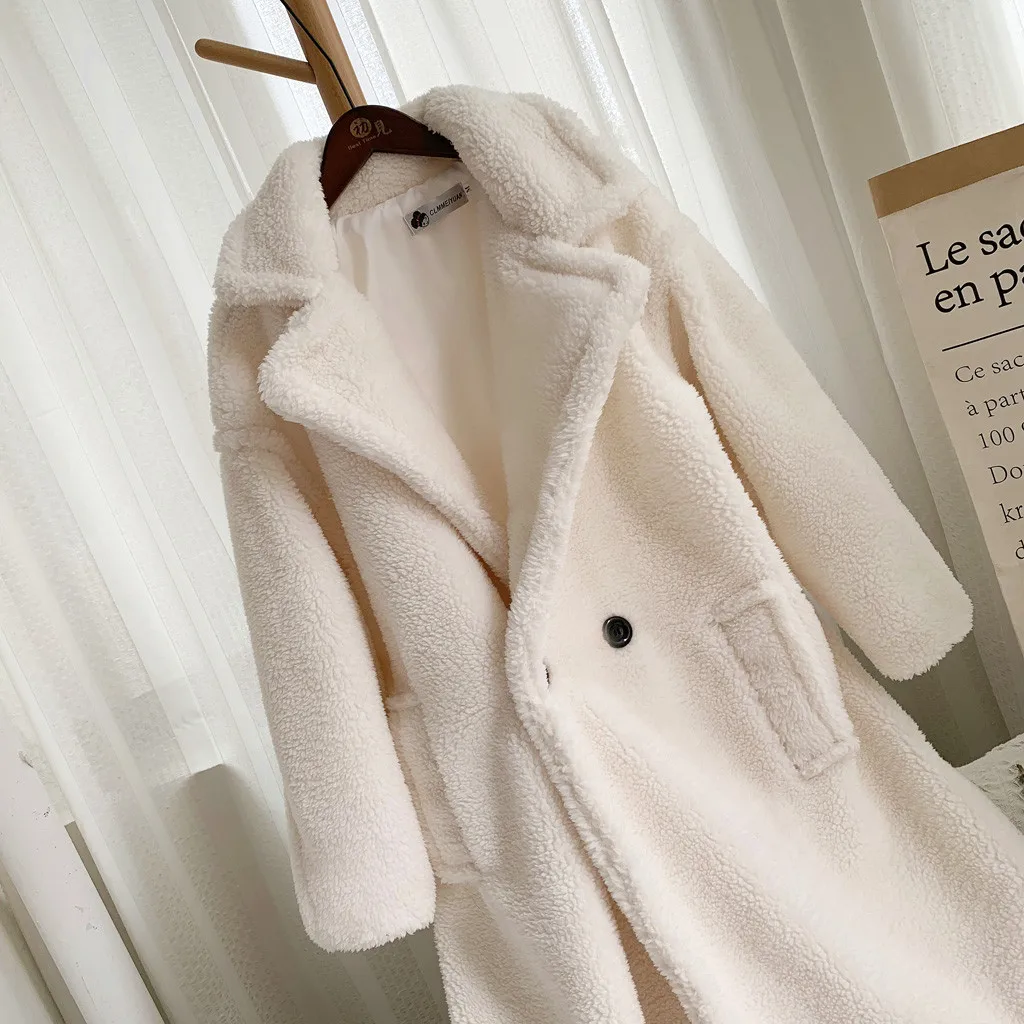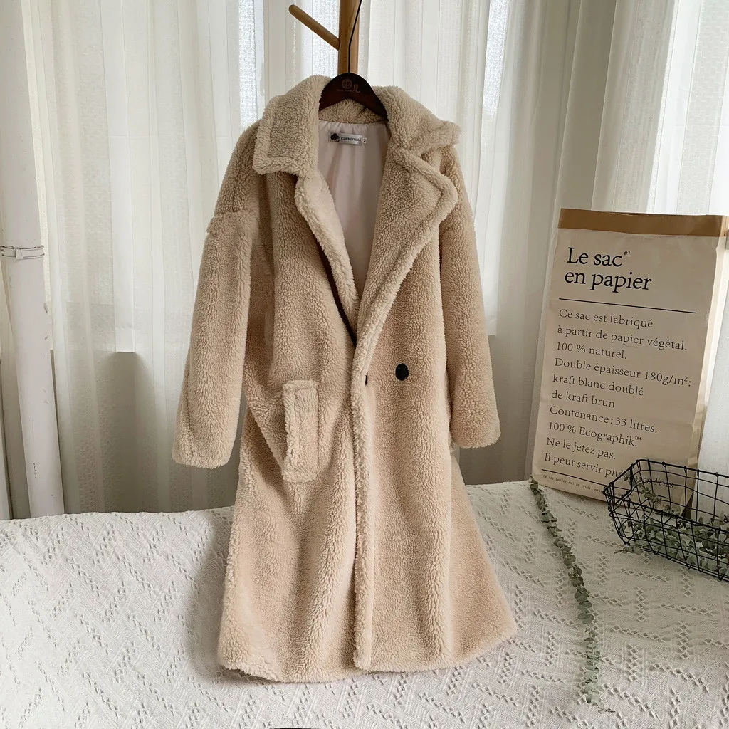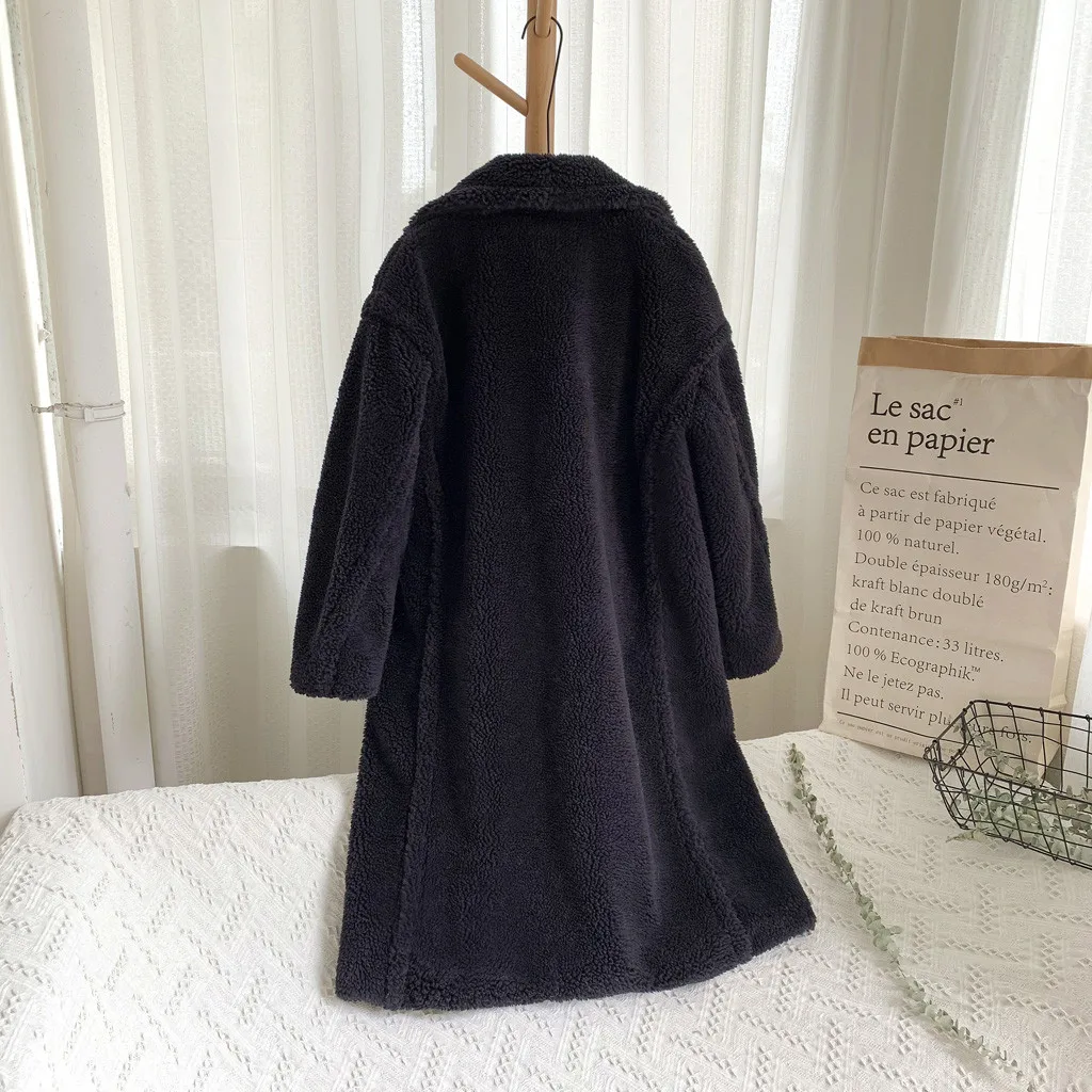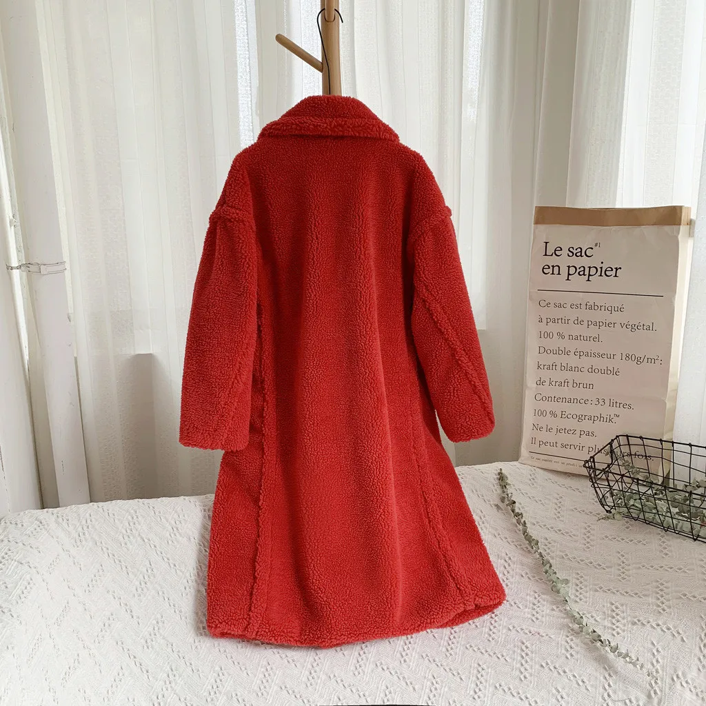 Женская модная осенняя и зимняя свободная ветровка средней длины, пальто из овечьей шерсти