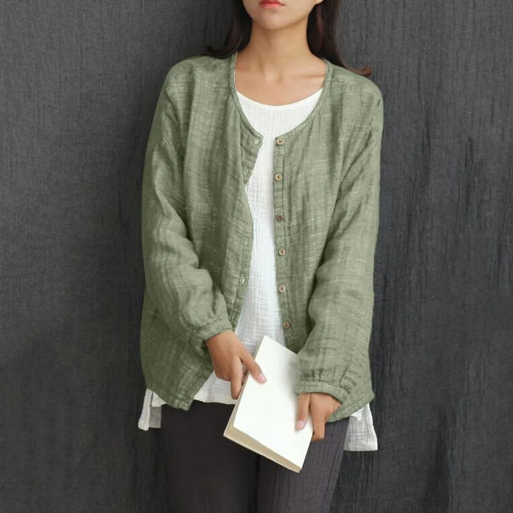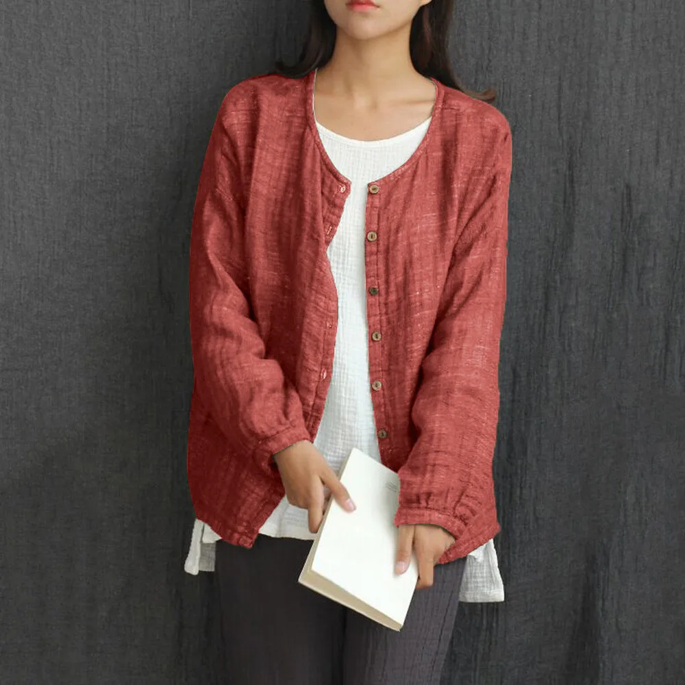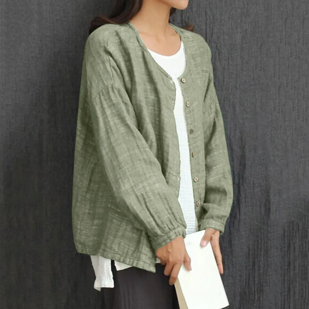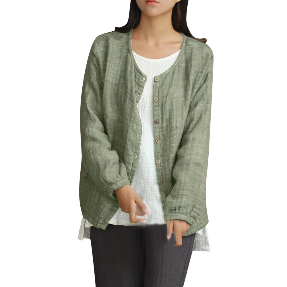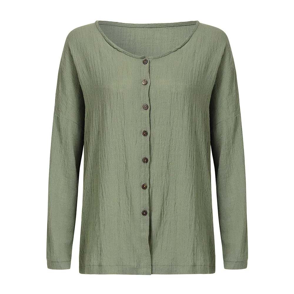 Женский однотонный кардиган из хлопка и льна с пуговицами и длинными рукавами