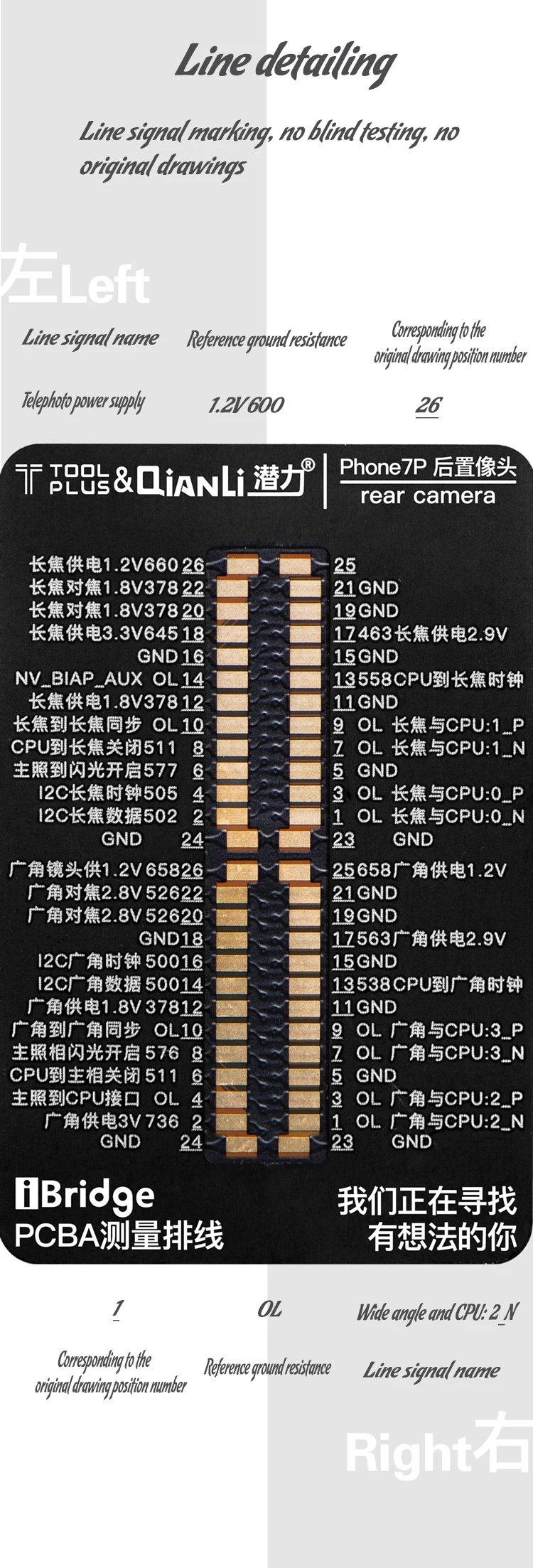 QINALI iBridge измерительный кабель, материнская плата для телефона, обнаружение неисправностей, камера, экран, задний разъем, приемник, микрофон, обнаружение