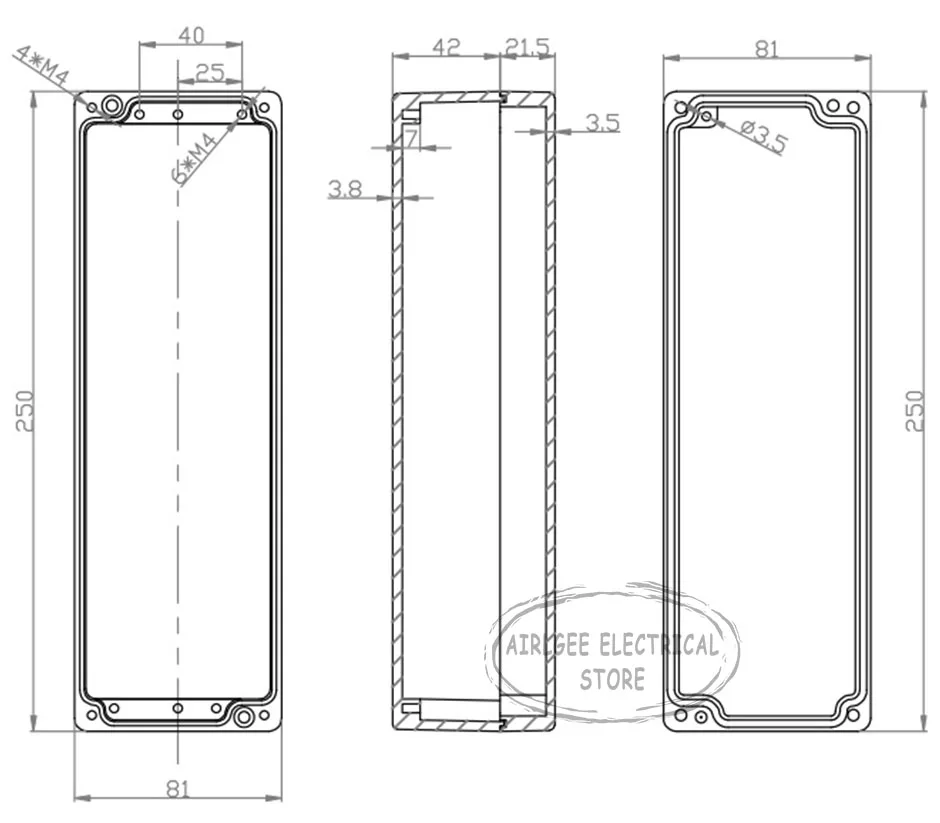 There are multiple mounting holes in the bottom of the box for easy mounting of electronic components such as terminals, rails and boards.