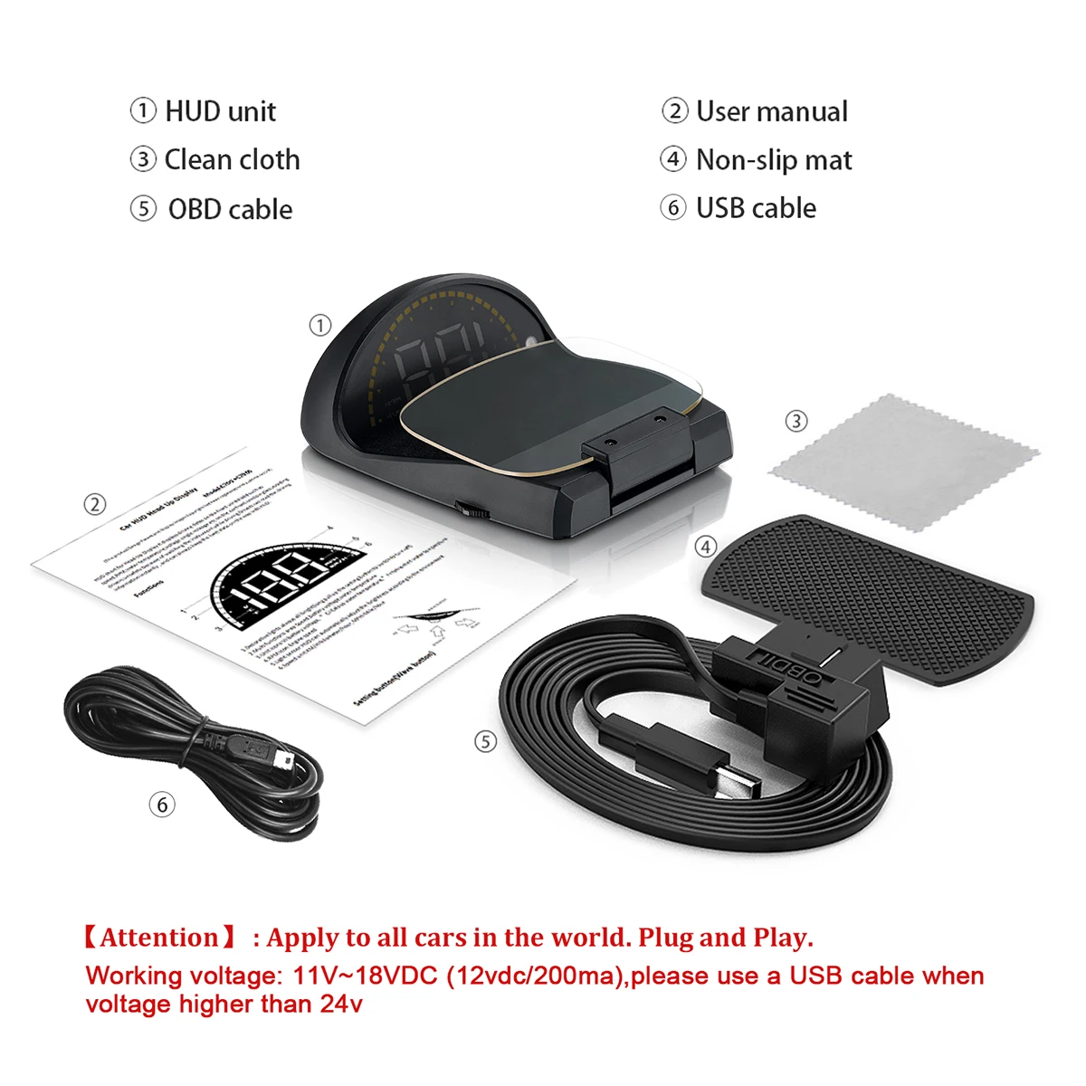 【EASY TO INSTALLATION – INTELLIGENT PARAMETER SETTING】1.Connect to the nearest OBDII/USB port ; 2. Hide the wires; 3.Turn on the right switch; Parameter can be set by oneself to change the speed unit, adjust the data error etc.