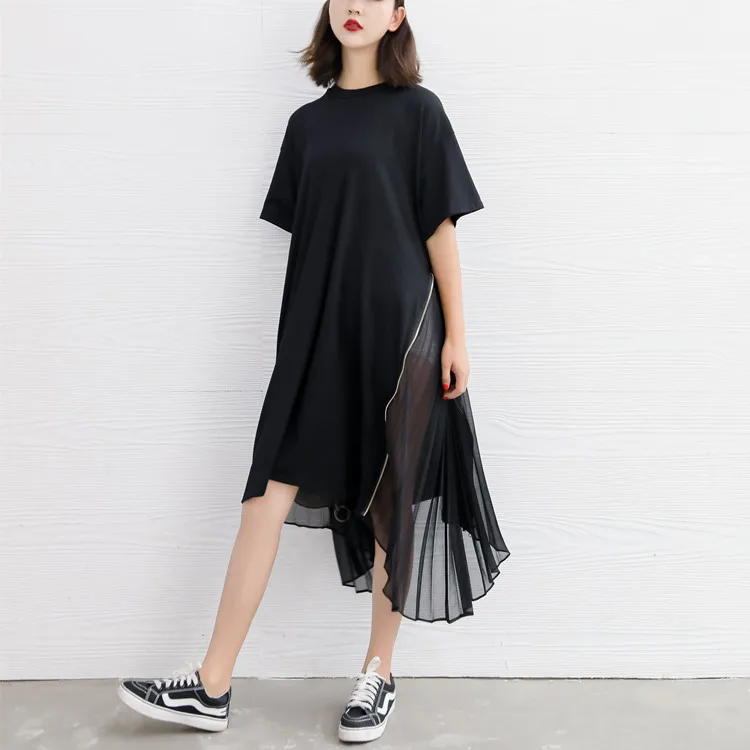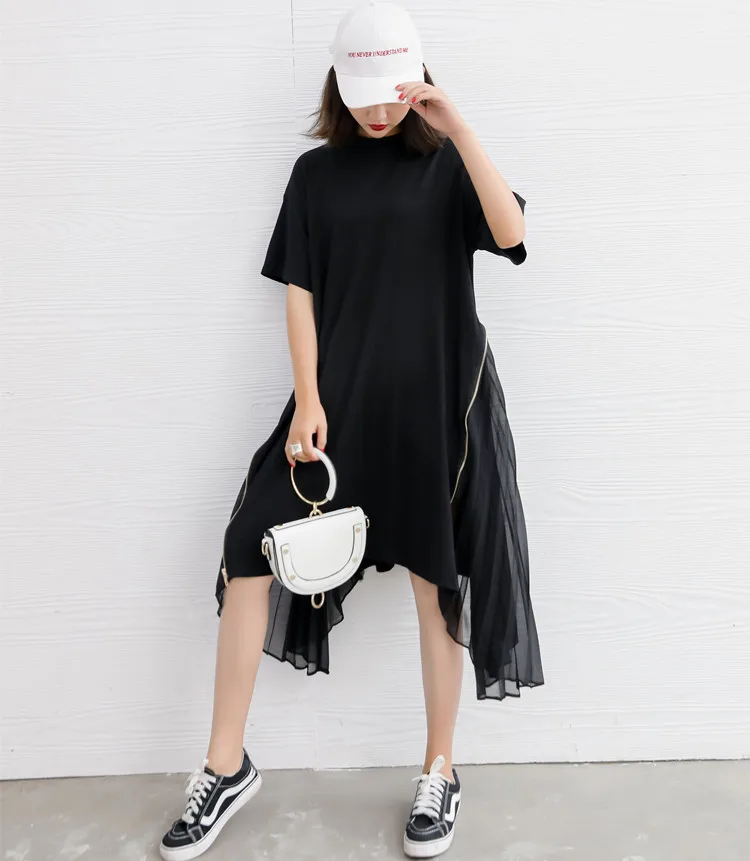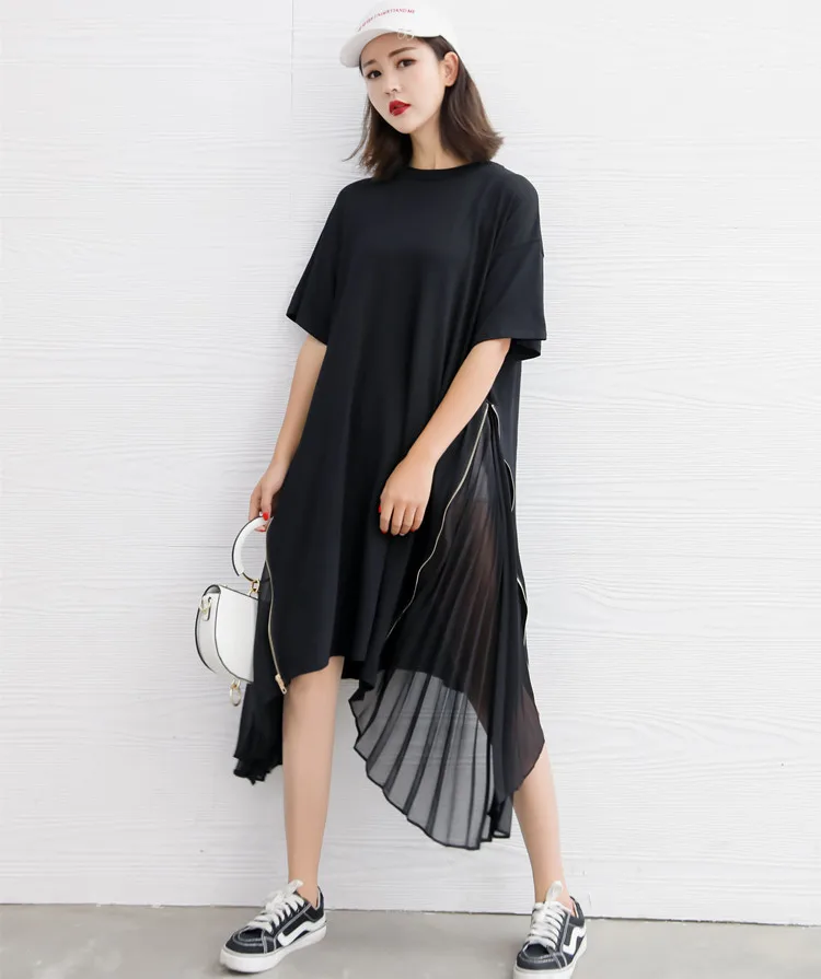 Ткань: хлопок + шифон Цвет: черный Размер: один размер, длина (самый короткий) 93 см, обхват груди 112 см, обхват талии 112 см, длина (самый длинный) 108 см Стирка: деликатная стирка, легкая и темная одежда отдельно Посылка: Платье 1 шт.
