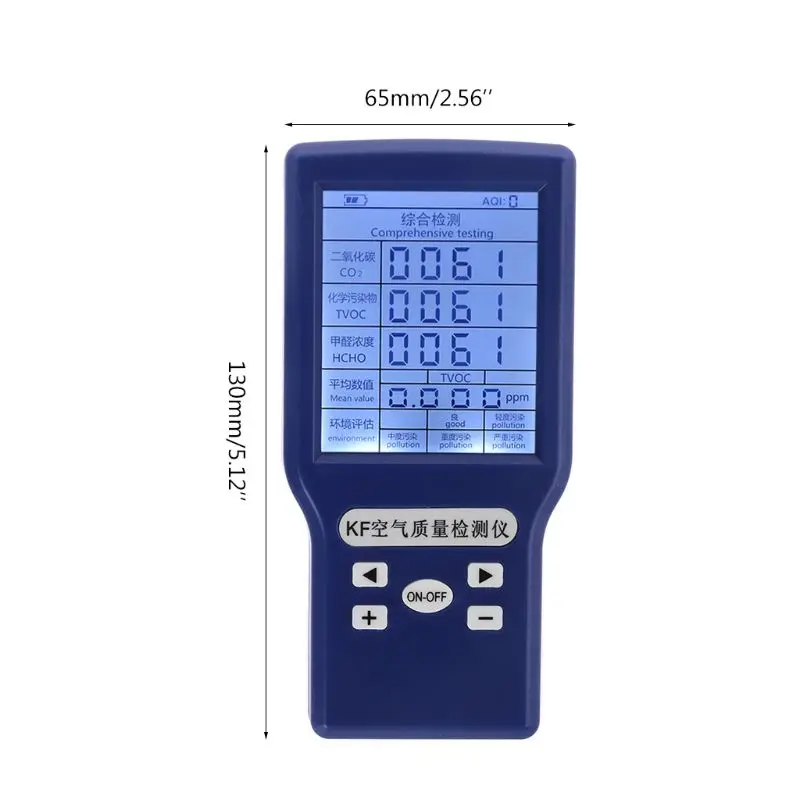 Счетчик пыли-это простой и надежный измерительный прибор, который сочетает в себе простоту использования и производительность. Наш монитор позволяет отслеживать 4 Ключевые факторы качества воздуха: TVOC,HCHO,CO2, environmental,AQI ..