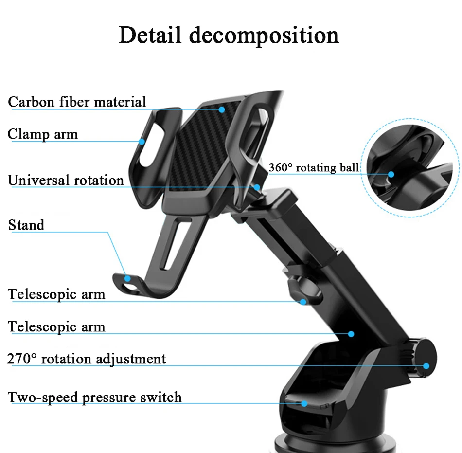 Телескопическая стрела Автомобильный держатель для телефона на магните Вертикальное вращение + Горизонтальное вращение Для 5 см-8,5 см ширина телефона Для 4,5-7 дюймов мобильный телефон Супер устойчивое Основание с пуговицами Применение лобовое стекло и центральная консоль воздуховыпускное отверстие С помощью одной руки operationButton автоматически открывается