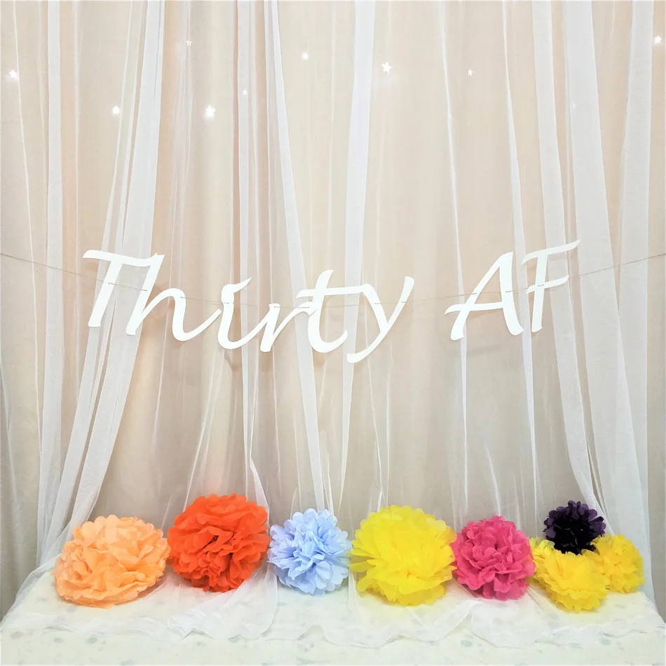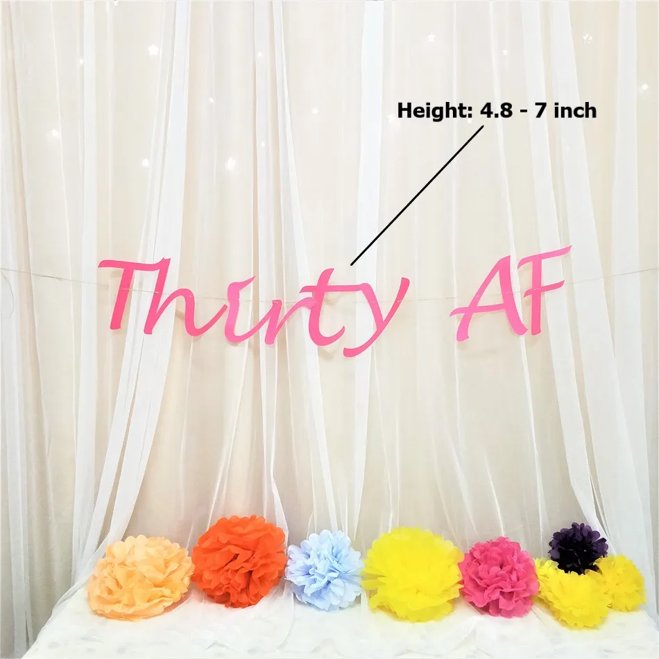 Этот список предназначен для баннера «thirty AF», который идеально подходит для любого случая! Отличный дополнительный баннер для любого дня рождения! Выберите цвет из листа меню
