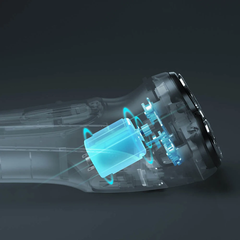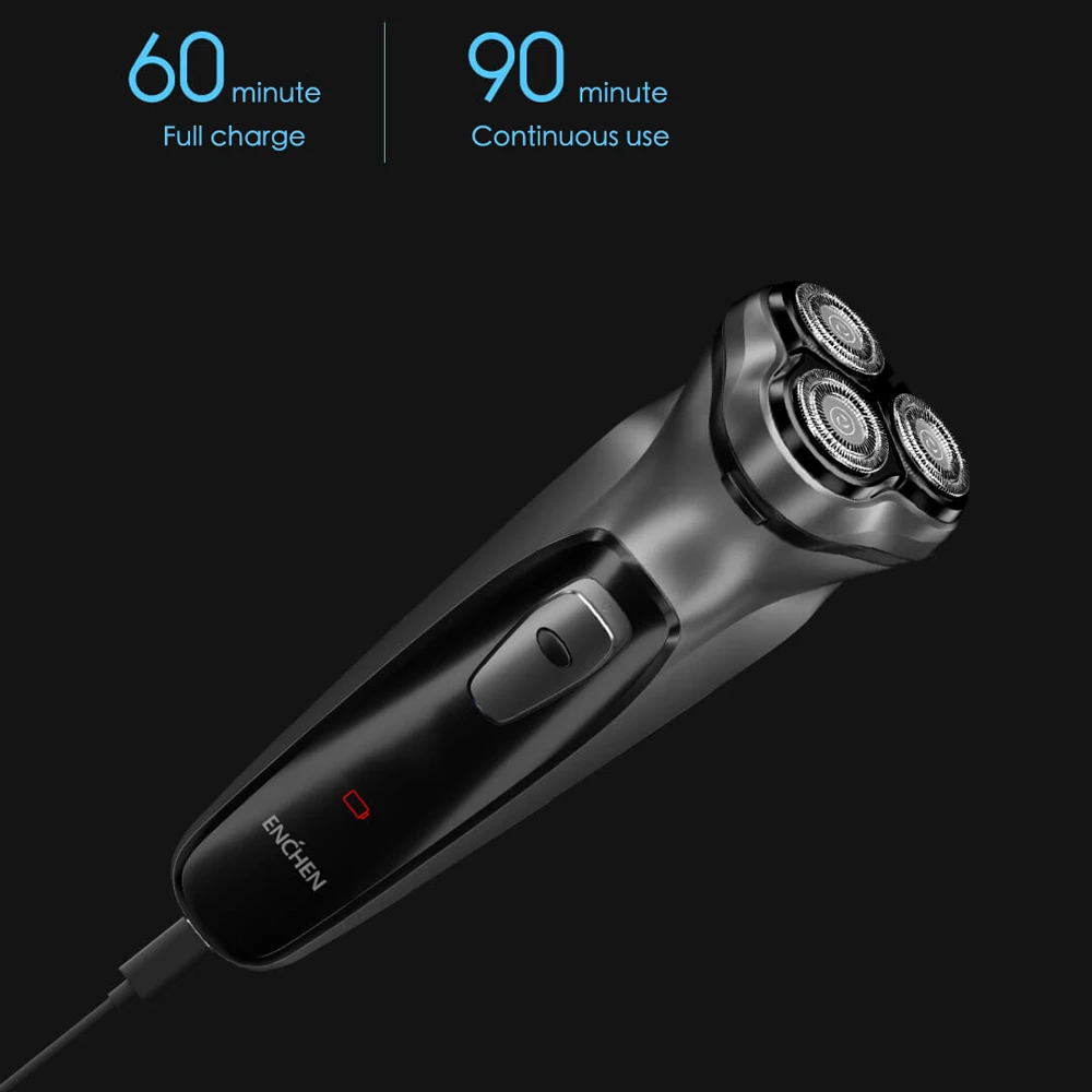 Бритва Enchen BlackStone поставляется с системой с тремя вращающимися и независимыми головками, которые позволяют более полное бритье, которое называет «3D». Благодаря независимому движению каждой головы, на самом деле, можно брить бороду даже в самых сложных точках, таких как вокруг губ, щек и подбородка. Лезвия бритвы ультра тонкие и имеют двойную кольцевую структуру, это может быть в состоянии отрезать столько волосков с более большой контактной поверхностью.