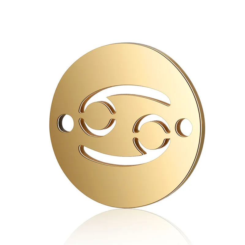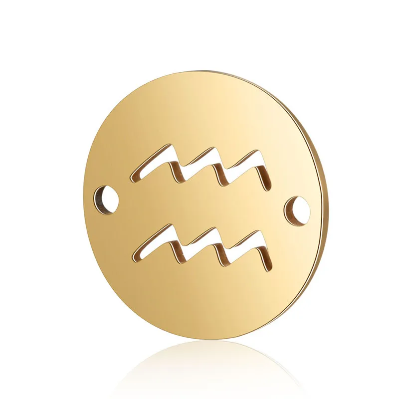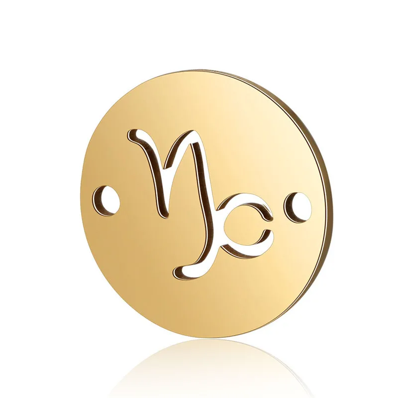 X-ROYAL 10 шт./лот 12*12 мм круглые два отверстия зодиака разъемы Нержавеющая сталь золото двенадцать созвездий ювелирные украшения, подвеска, шармы