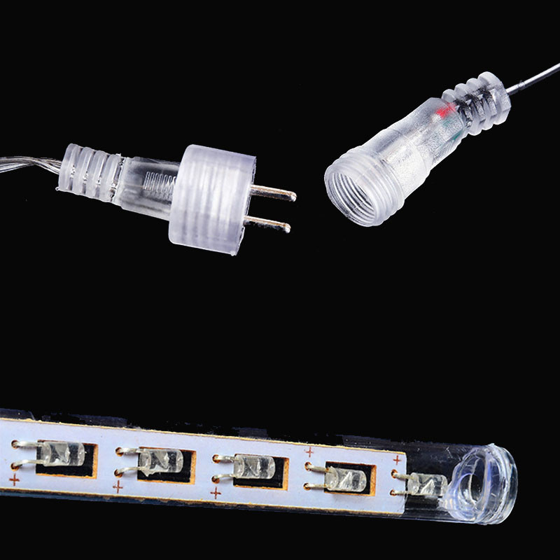 Внимание 1. Трубки являются водонепроницаемыми, но для вашей безопасности, пожалуйста, держите адаптер и подключите в сухом месте. 2. Светодиодный бисер имеет Номинальный +/-, поэтому, если трубки не мигают первый раз при включении питания, пожалуйста, Отсоедините разъем, измените направление и подключите их снова. 3. Вам лучше не подключать метеорные огни более 3 комплектов с одним адаптером.