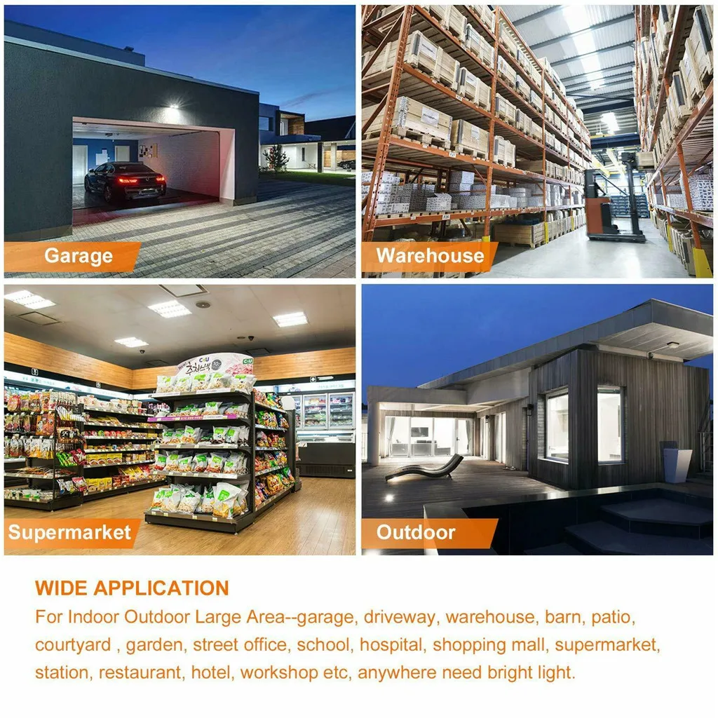 [Долговечность и длительный срок службы] -- гаражные фонари изготовлены из безопасного корпуса из алюминиевого сплава премиум-класса, стабильные и прочные, быстро рассеивают тепло, произведенного светодиодной лампой. Из-за долгого срока службы в течение 50000 часов стоимость обслуживания резко снижена.