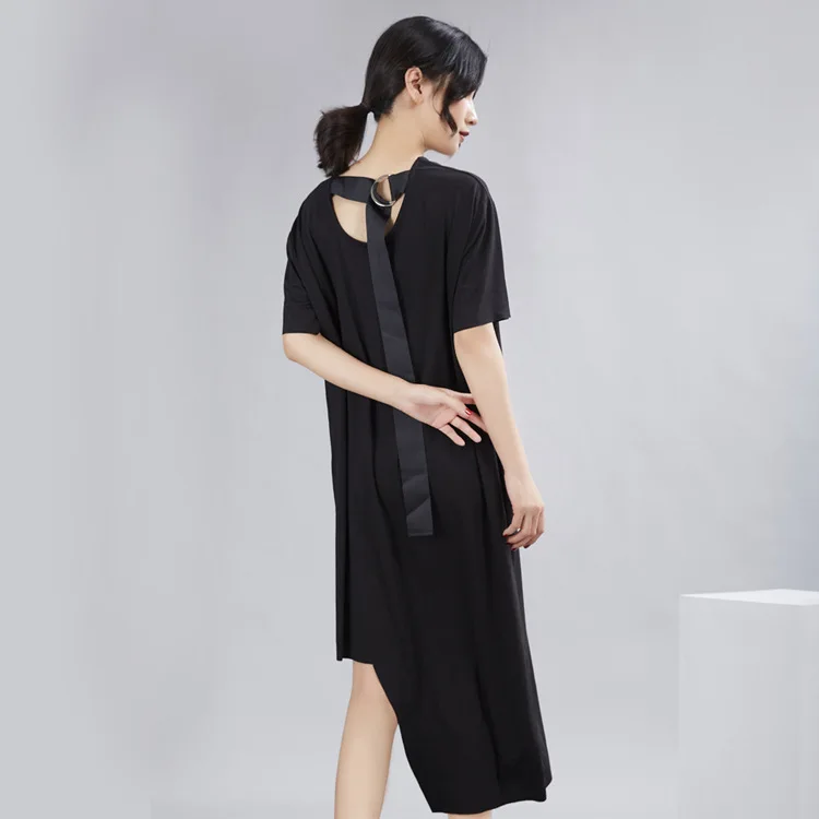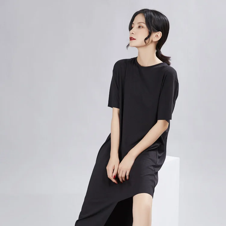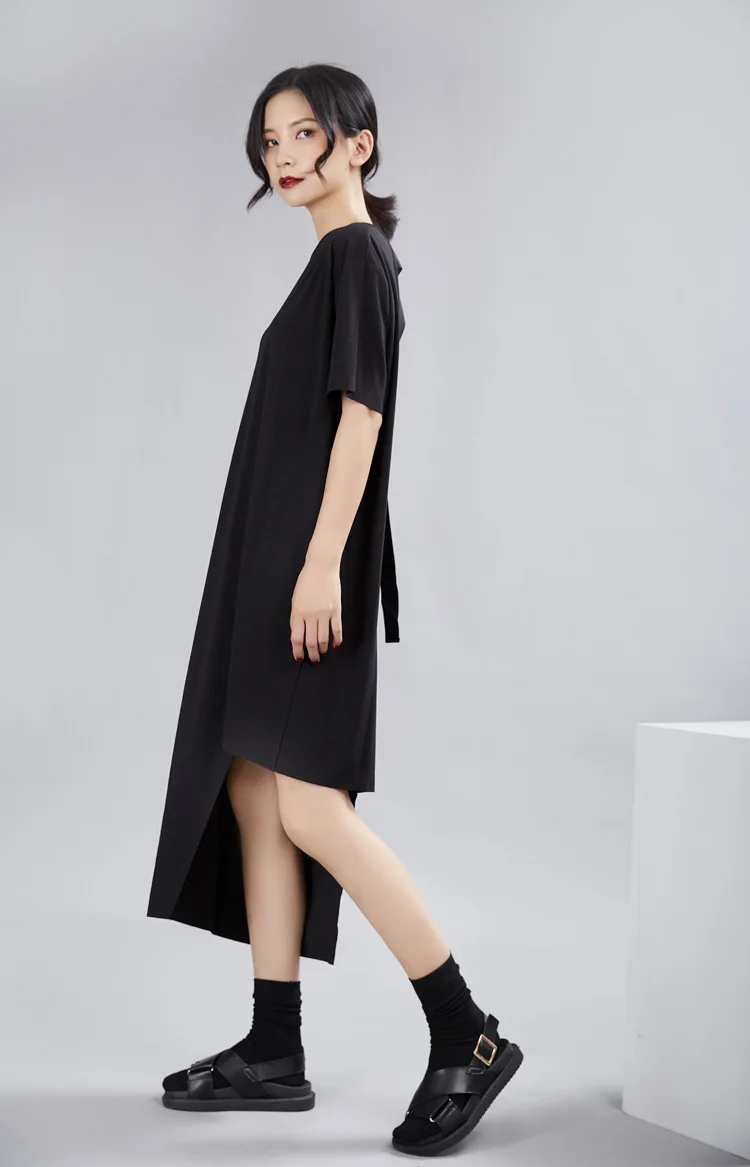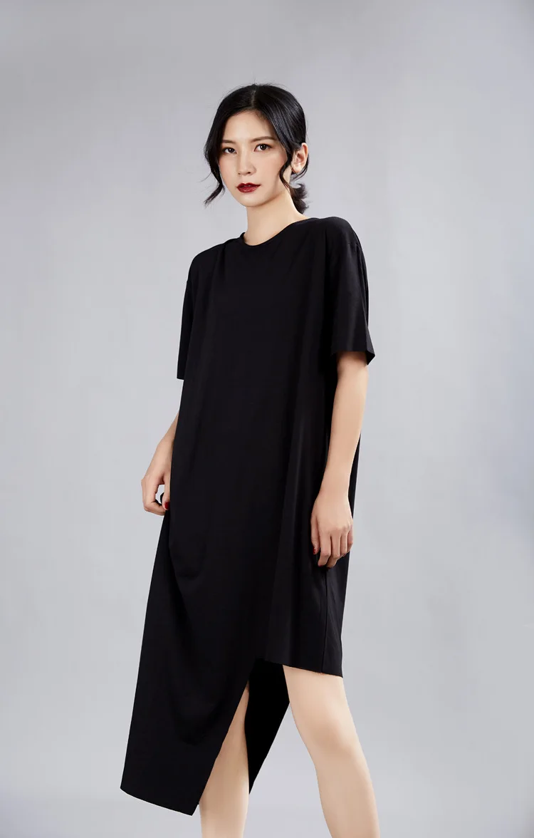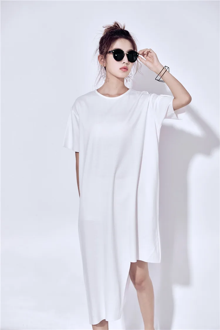 Ткань: 100% хлопок Цвет: черный, белый Размер: один размер, Плечо 50 см, обхват груди 124 см, длина 88 см-114 см Стирка: деликатная стирка, легкая и темная одежда отдельно Посылка: Платье 1 шт.