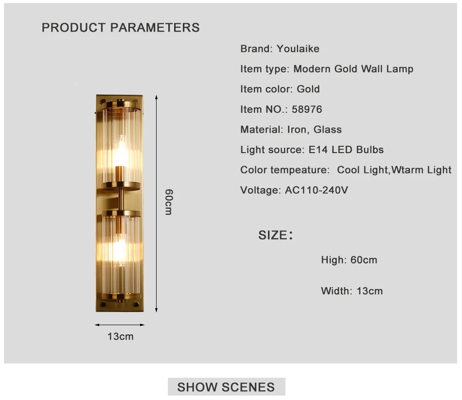 Позиция №: YG58976 Стиль товара: современный Цвет товара: золотой Размер товара: W13 h60см Материал: металл Источник света: Светодиодные лампы E14 Цветовая температура: теплый свет (3000K), холодный свет (6000K) Напряжение: 90-260 В Доставка: 6-8 дней Применение: гостиная, столовая, спальня