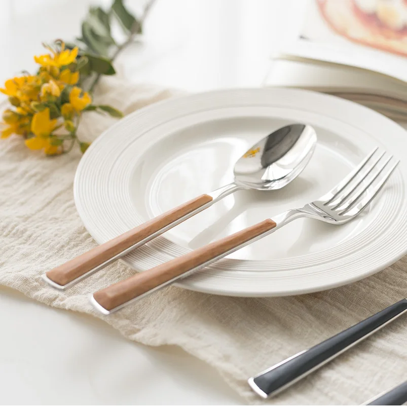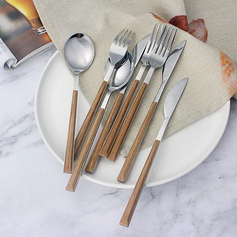 24 шт. набор рождественской посуды, креативная Имитация деревянной ручки, посуда из нержавеющей стали, кухонные столовые приборы, столовые приборы, нож, вилка, ложки