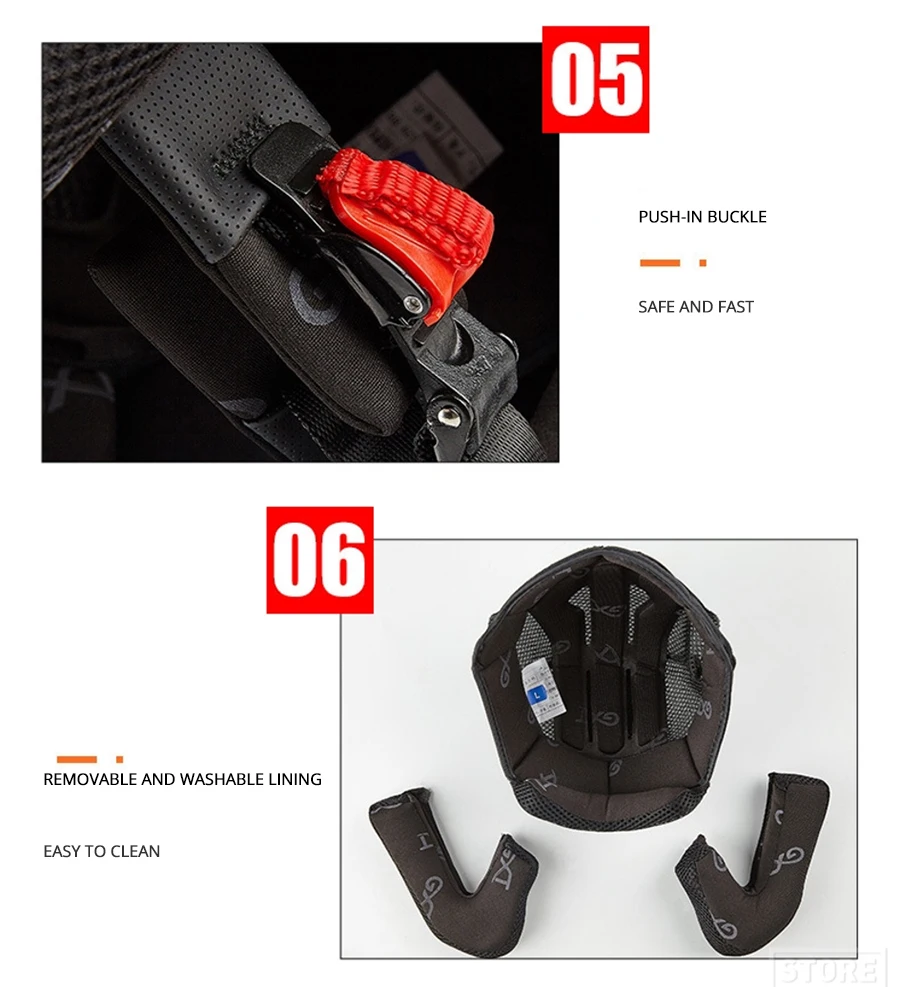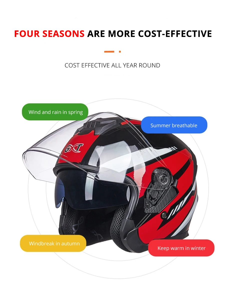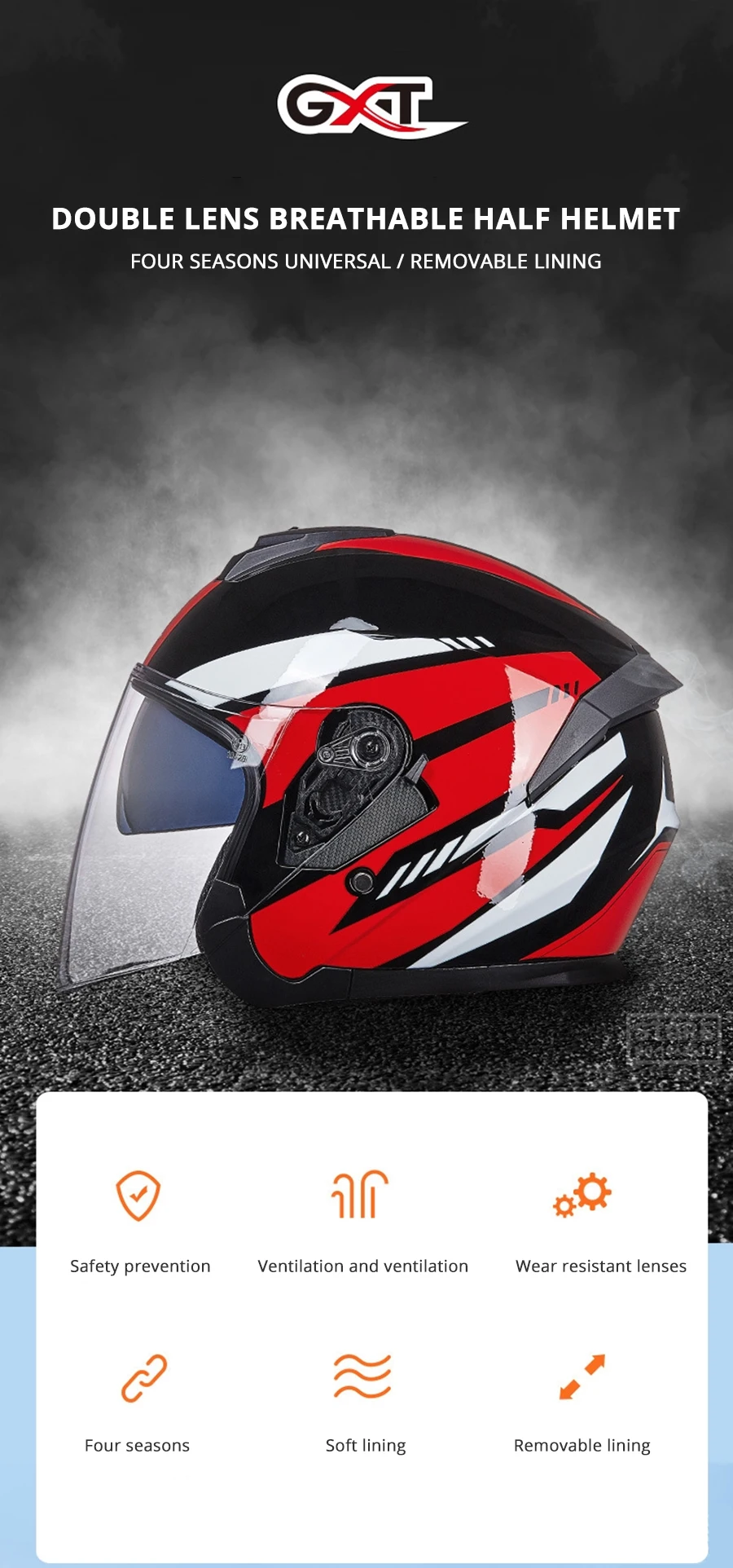 Особенности: Высокопрочный корпус ABS, легкий и ударопрочный Гладкий и легкий дизайн уменьшает шум ветра Многослойный защитный буферный слой EPS обеспечивает современное поглощение энергии. Комфортная мягкая подкладка используется дышащая техническая ткань, гипоаллергенная, высококачественная ткань, мягкая, Абсорбирующая, вентиляция, лучшая гибкость; больше чистоты Дизайн с откидными линзами обеспечивает защиту от ультрафиолета Впускные и Выхлопные порты обеспечивают большую вентиляцию, чтобы сохранить прохладу Быстросъемная Пряжка для надежной фиксации, которая будет лежать на вашей голове Европейский дизайн, передний рот, верх и хвост, делают шлем более модным Разумный Дизайн: Подарите вашей машине много удовольствия Параметры: Материал: Синтетическая кожа, АБС-пластик. Вспенивающийся полистирол Цвет: как на картинке Вес: шлем 1000 г Размер шлема: M (55-57 см), L (58-59 см), XL (60-61 см) Наименование товара: мотоциклетные шлемы с двойными линзами, мотоциклетный шлем из АБС-пластика Цвет: белый, черный, синий, красный Использование для: Mortorcycle, езда Посылка включает в себя: 1 * Gxt мотоциклетный шлем 1 * шлем сумка