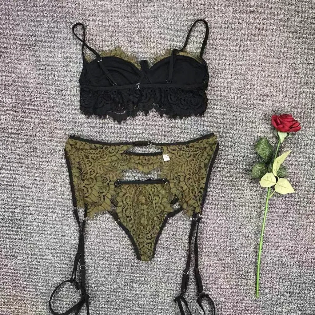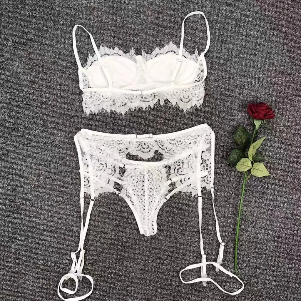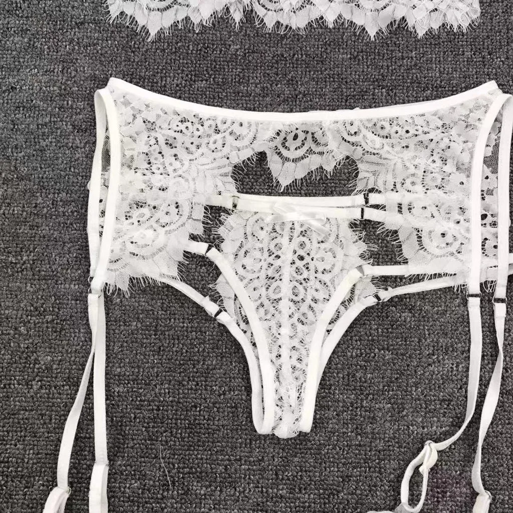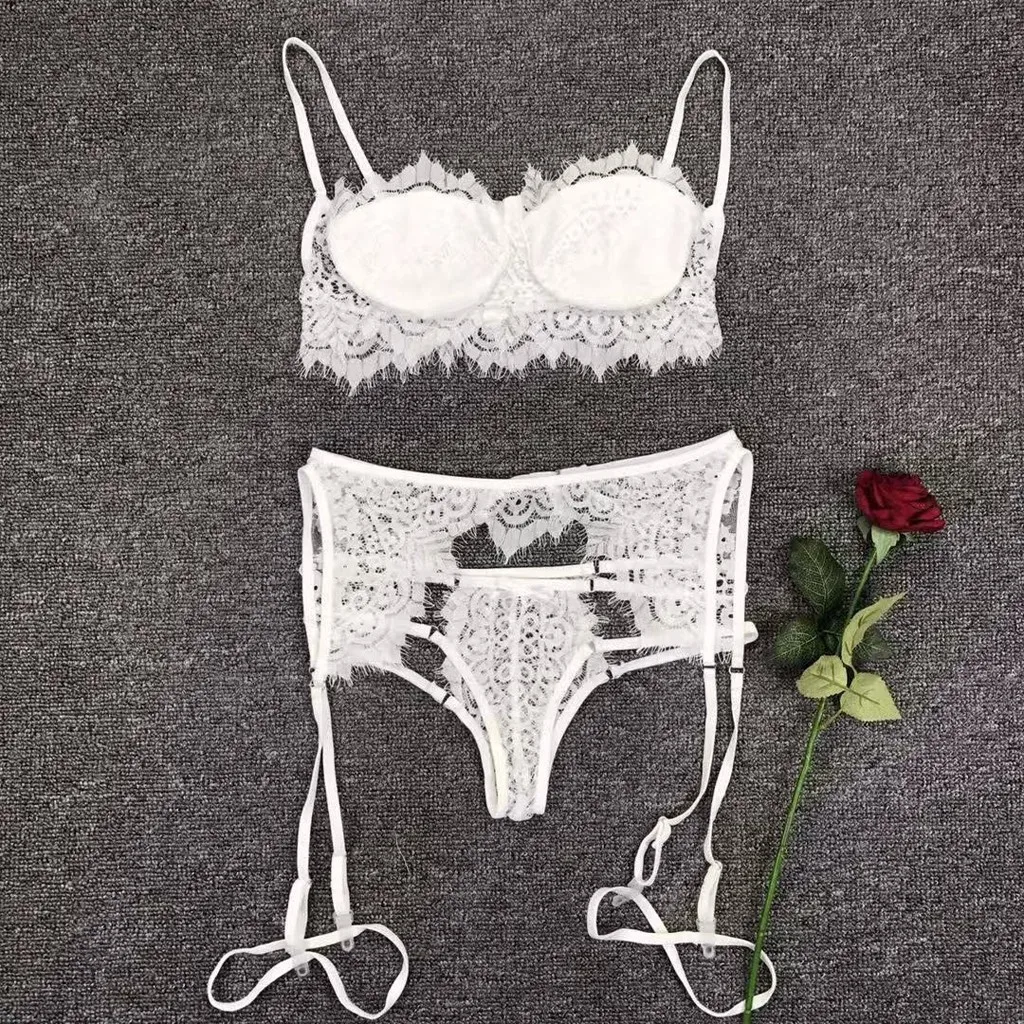 Нижнее белье женское кружевное, пикантное нижнее белье на бретельках, бюстгальтер и трусики с подвязками, пикантное нижнее белье, комбинация, комплект кружевного нижнего белья, 3 шт., 05 *