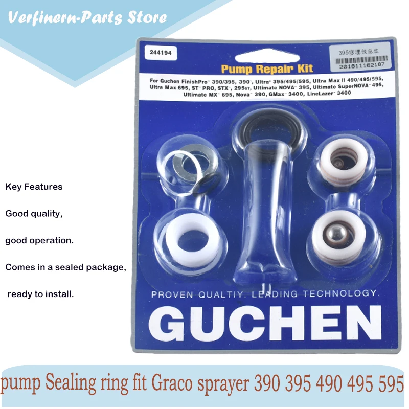 Совместимость Эта часть может быть заменяемым набором для ремонта насоса подходит для Ultra390, 395, 490, 495, 595. В виде съемок! Безвоздушного распыления оборудование может быть использовано в покрытиях, латексной краске, encaustic плитки краски распыления, стальная структура антикоррозийной краски, эпоксидной цинка богатый, Истинный Камень лак распыления, Большой порошок шпатлевки, шпатлевки, пересекались дороги инженерии, огнеупорная краска, ремонт и т. Д.