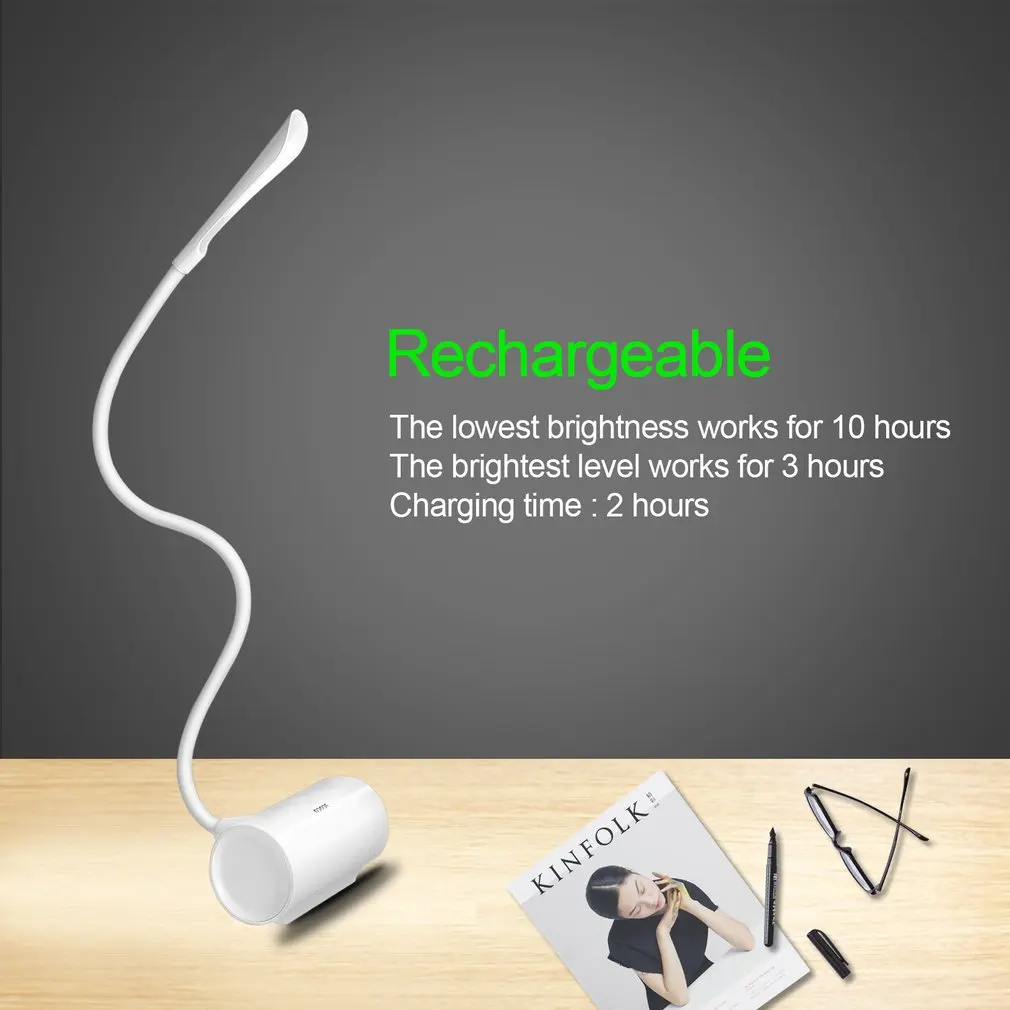 3. LED LAMP BATTERY easily recharges and lasts up to 10 hours. To recharge simply plug into laptop, power bank, or electrical outlet. The on/off and 3 dimmable settings are touch sensitive. Simply touch the lamp to make a change.