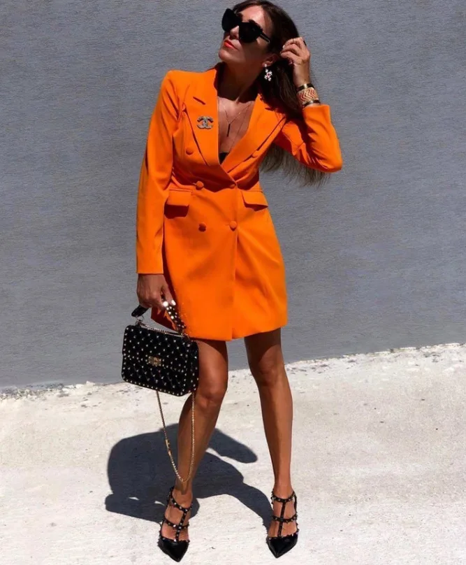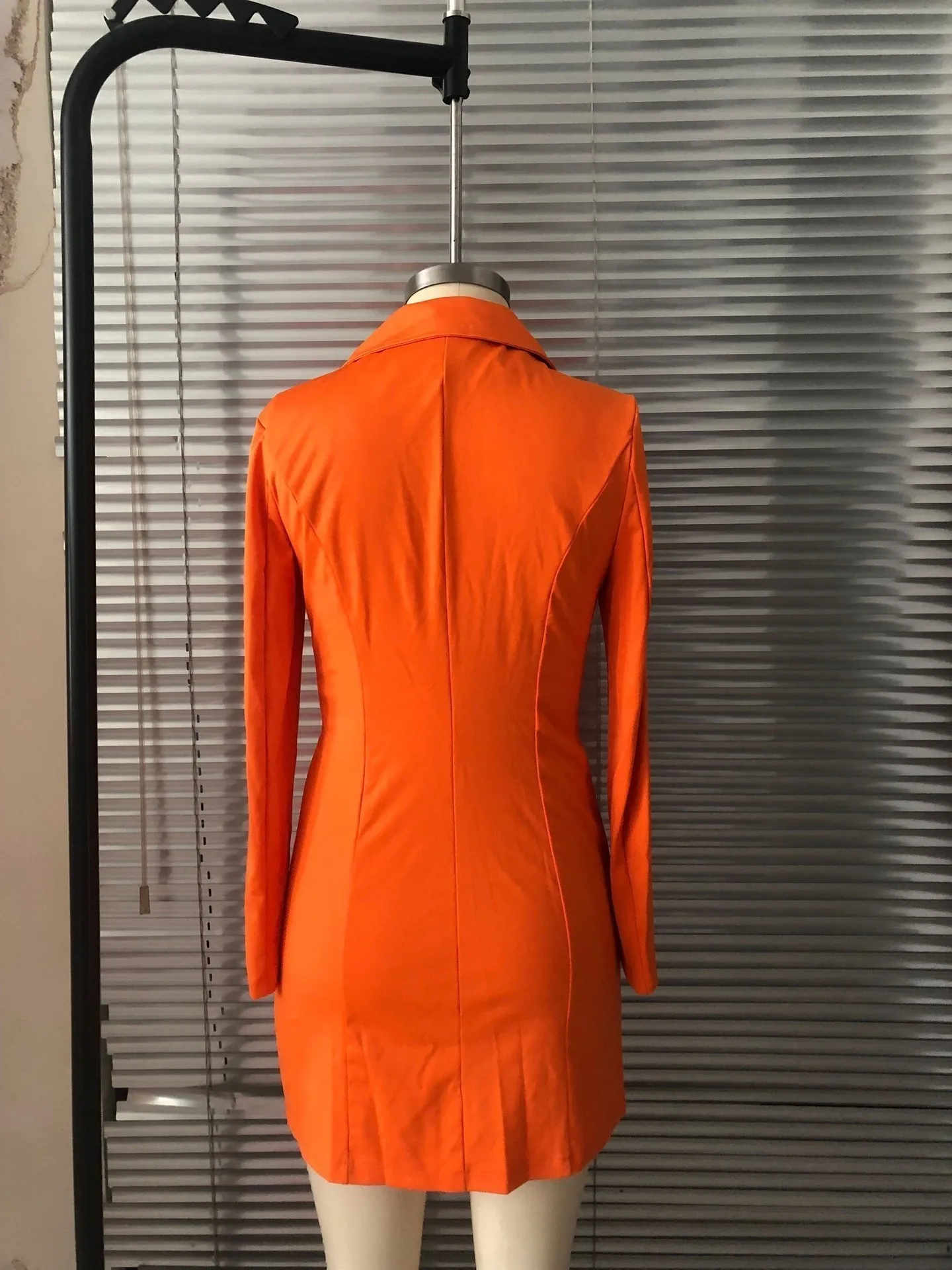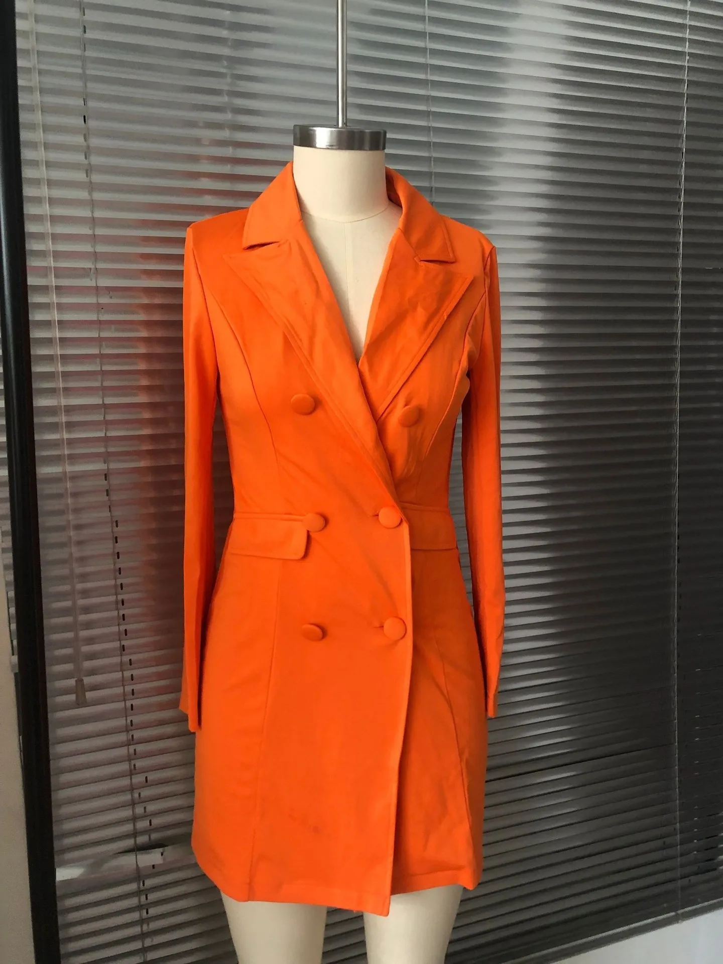Оранжевый Блейзер миди платье женская одежда повседневная и многорядная пряжка