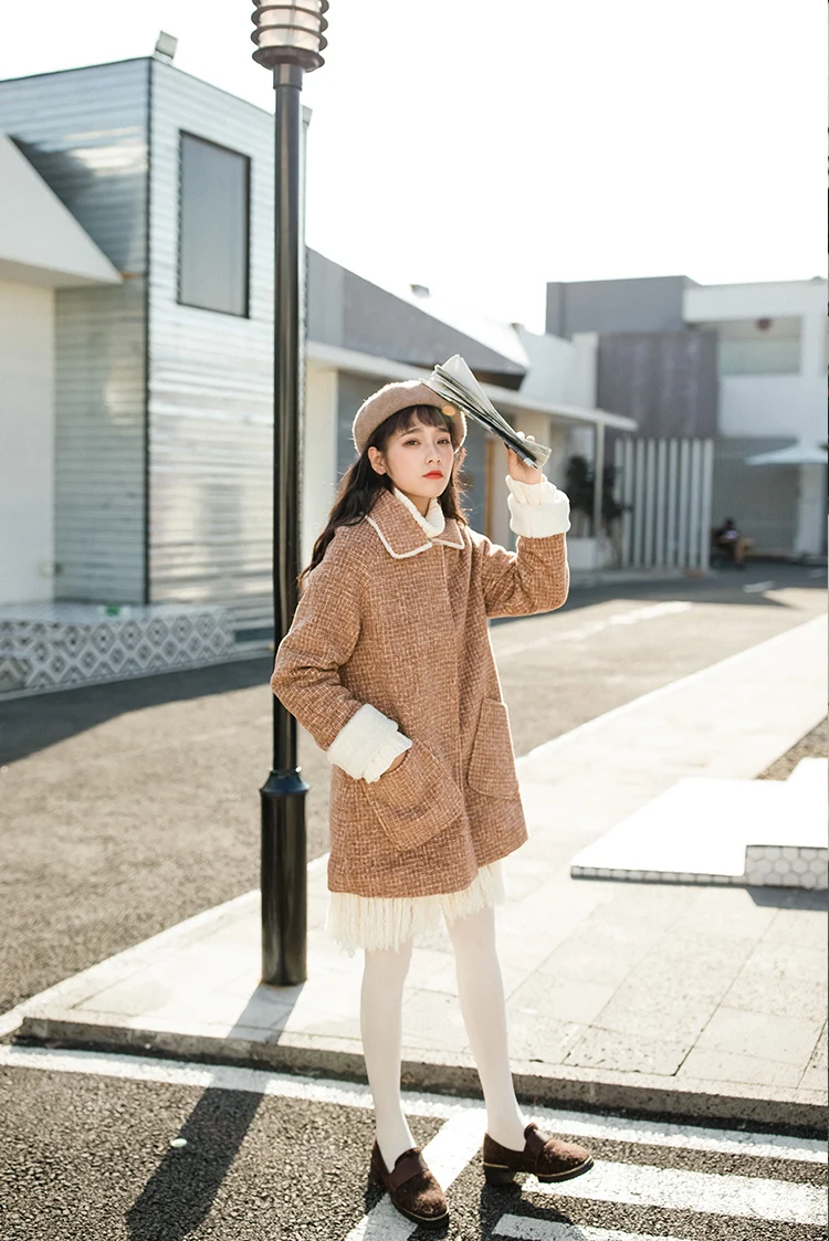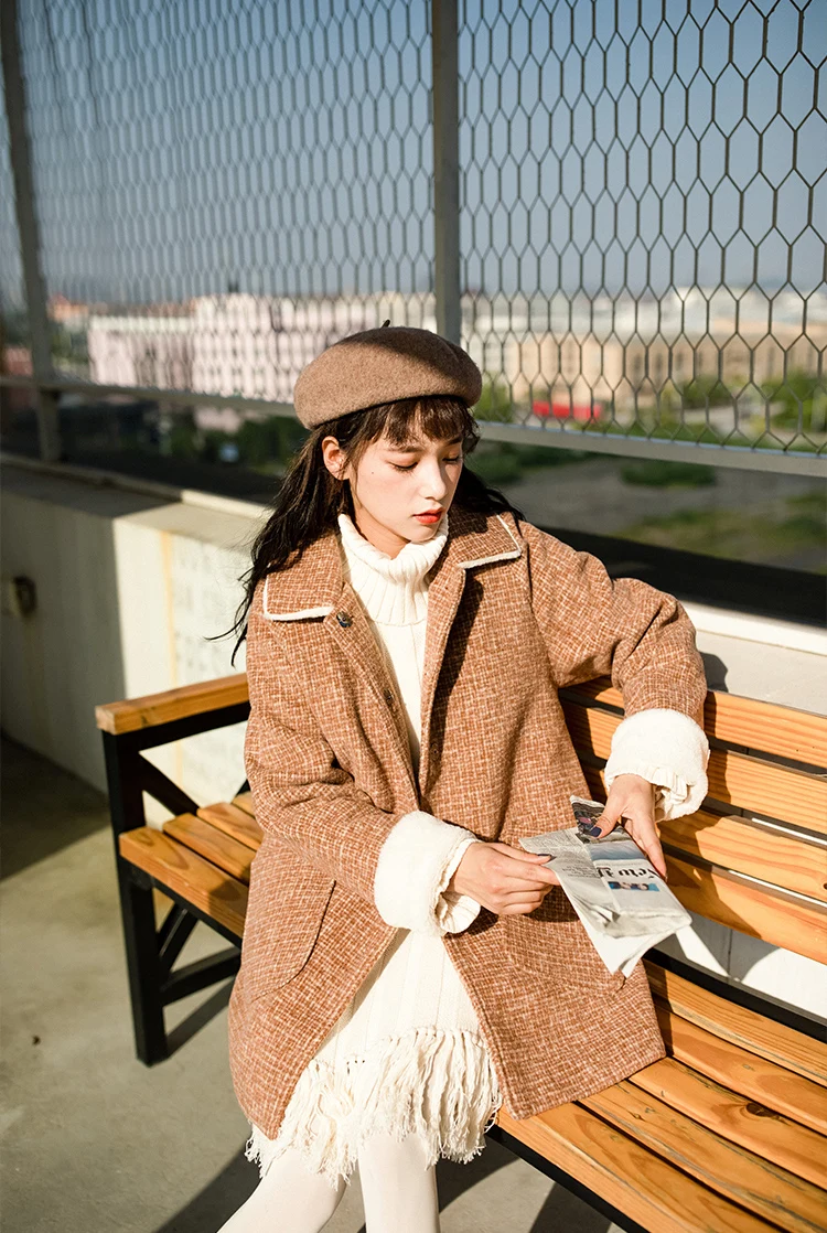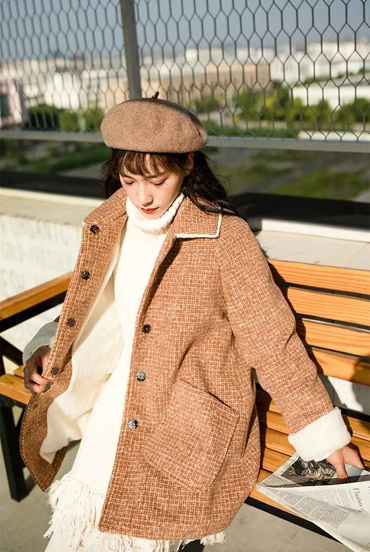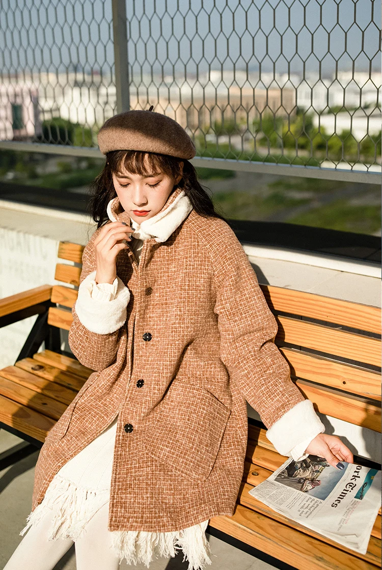 Выдалбливают Зеленая кнопка пальто для женщин длинные шерстяные Винтаж
