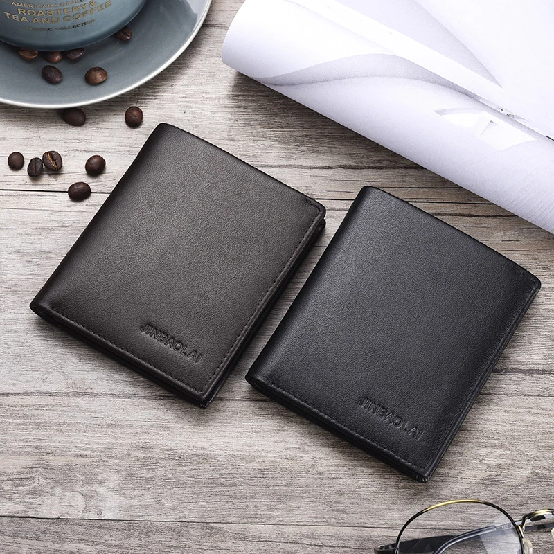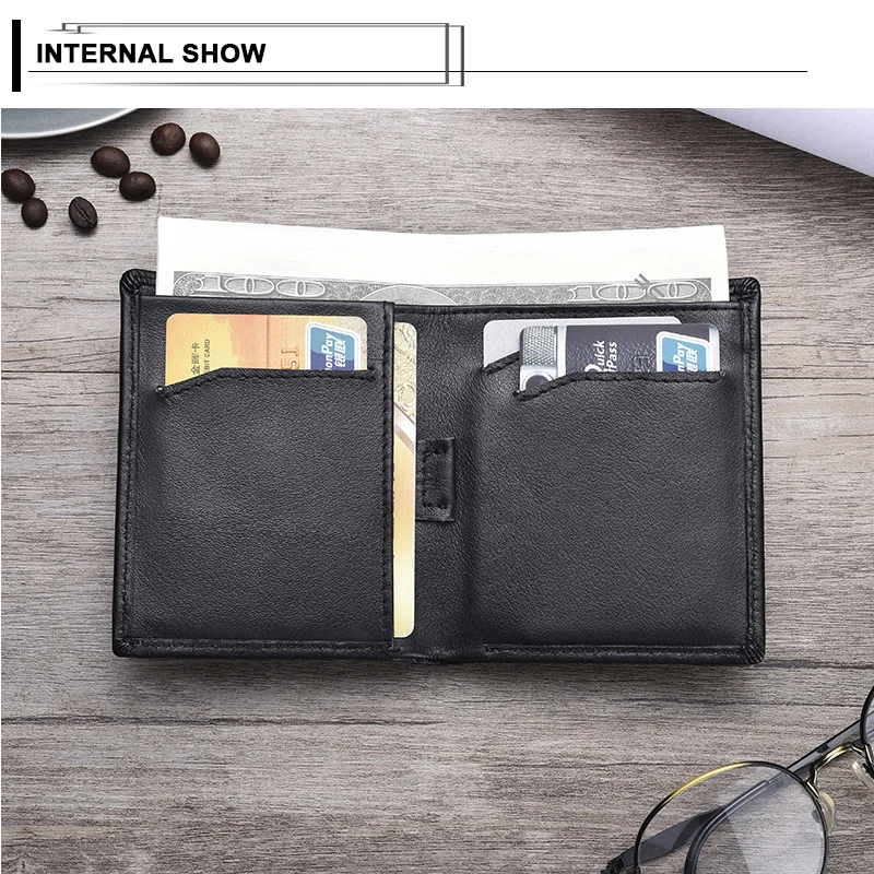 Мужской тонкий кошелек из воловьей кожи с блокировкой RFID, кошелек для кредитных карт, повседневный короткий двойной кошелек, передний карман, кошелек