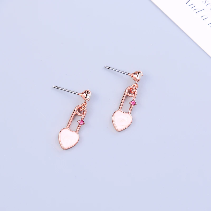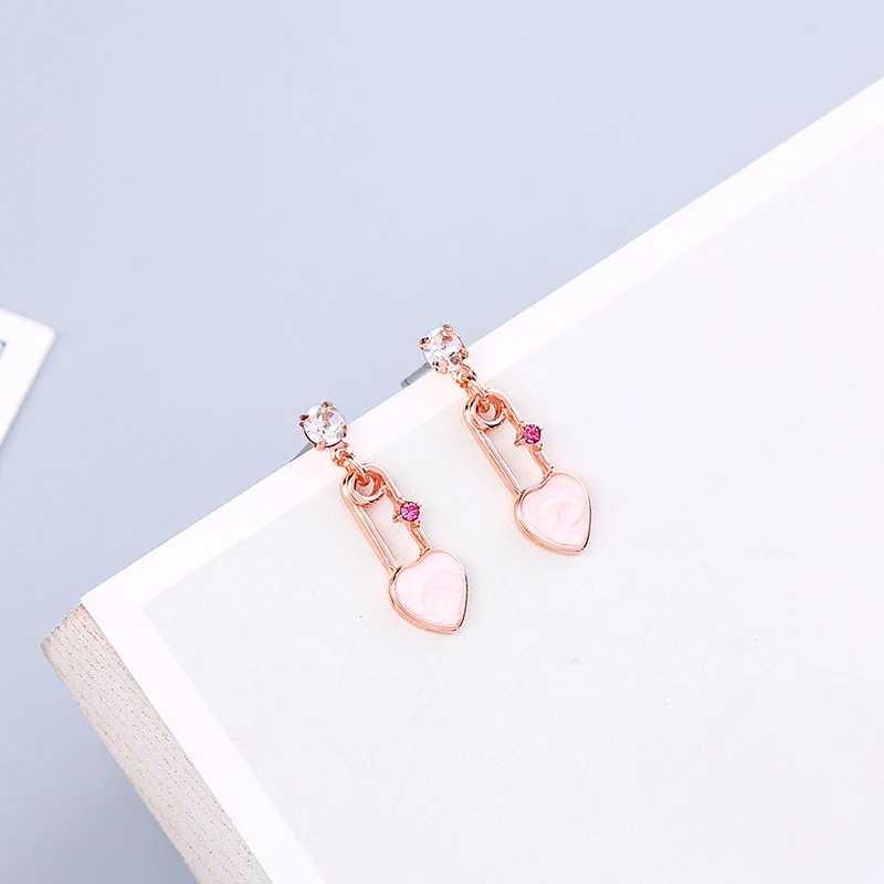 Романтические уникальные серьги-капли с эмалью в форме сердца с блестящими кристаллами для женщин, подарки цвета розового золота, новые модные ювелирные изделия, оптовая продажа