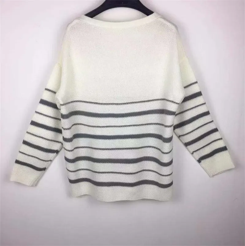 Женский свитер Осень Зима Свободный вязаный свитер модный v-образный вырез длинный рукав плюс размер пуловер Повседневный полосатый свитер