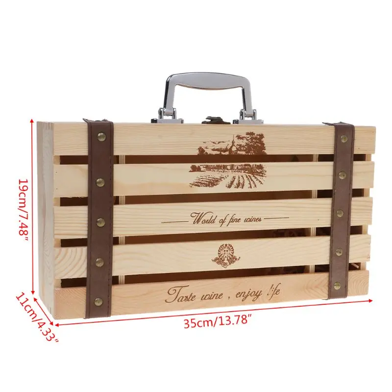 Ручной Работы Деревянный чехол для бутылки вина с принтом виноградника на передней панели и предназначен для того, чтобы выглядеть как ящик в винтажном стиле.