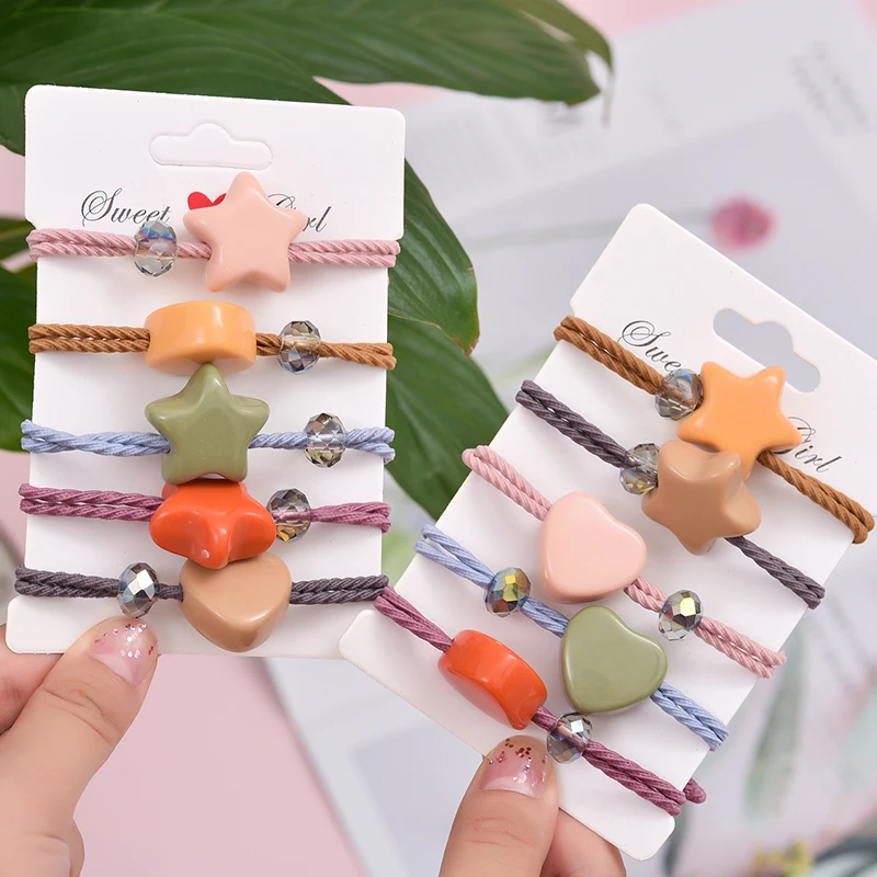 Диаметр кольца для волос около 5-6 см, вес около 0,02 ~ 0,4 кг, пять цветов относится к цвету резинки, одна карта пять цветов, каждый цвет